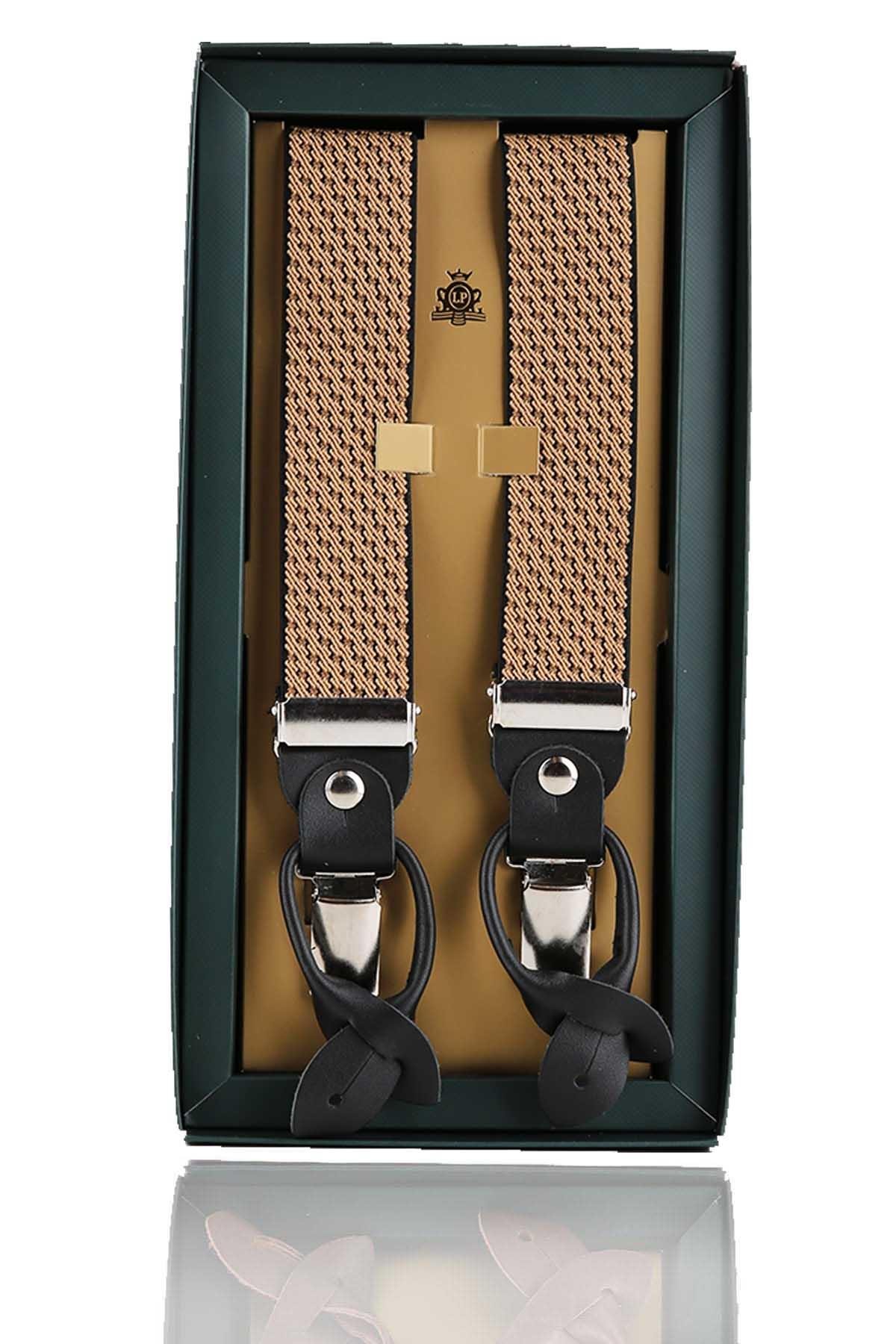 Bej Deri Bağlantılı Düğme Delikli Jakarlı Pantolon Askısı PAN154 (PAN154)