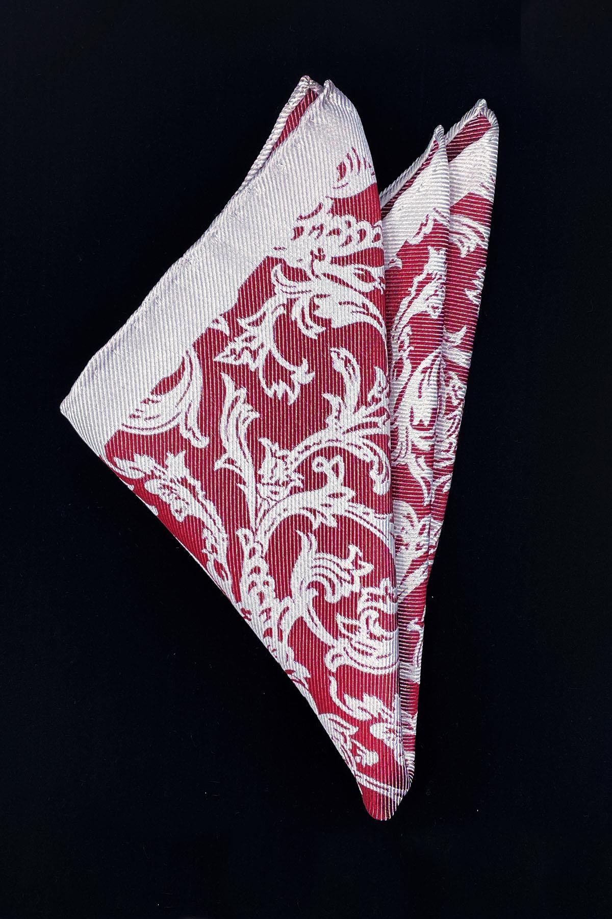 Beyaz - Kırmızı Çiçek Desen İtalyan İpek Cep Mendili SPS460 (SPS460)