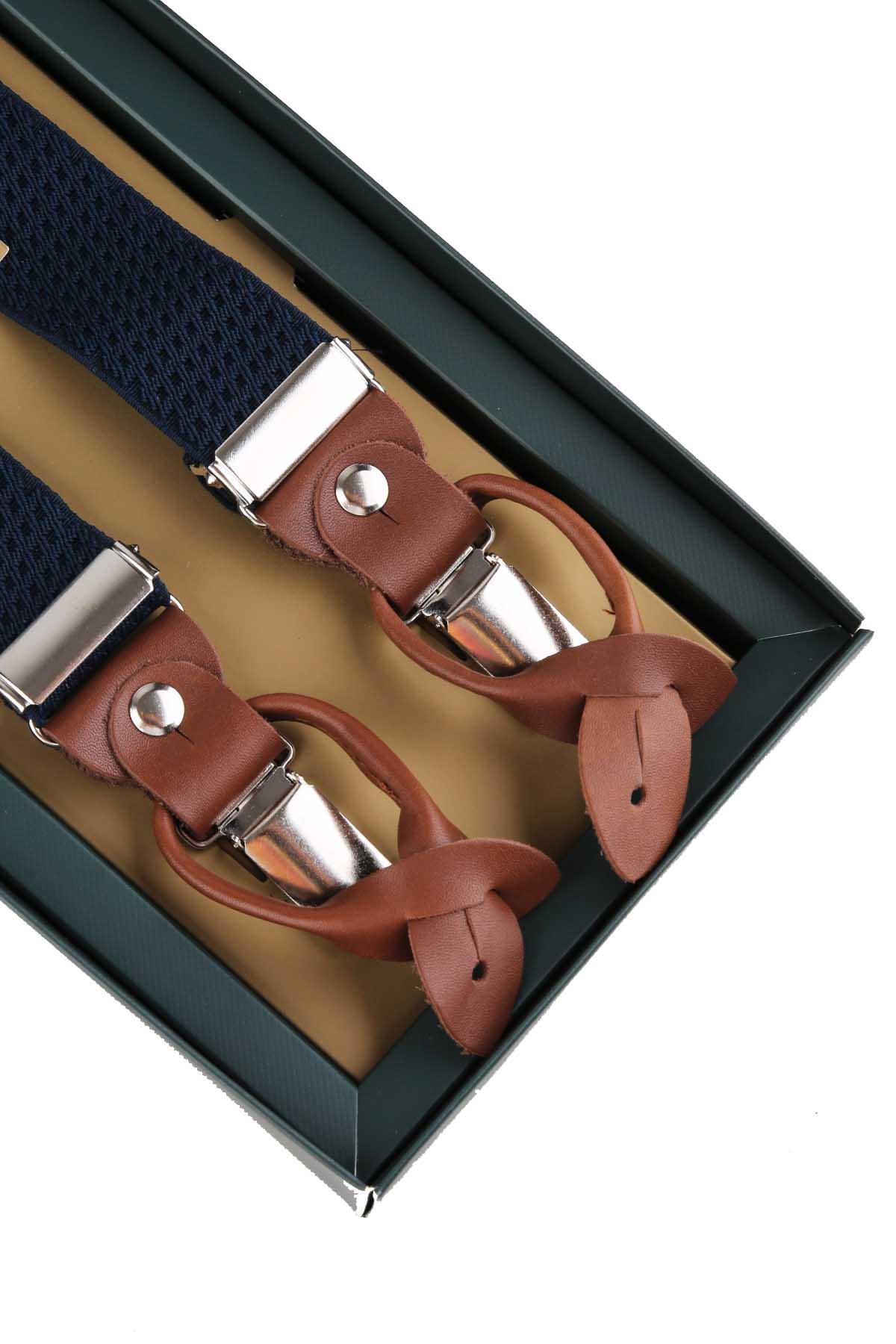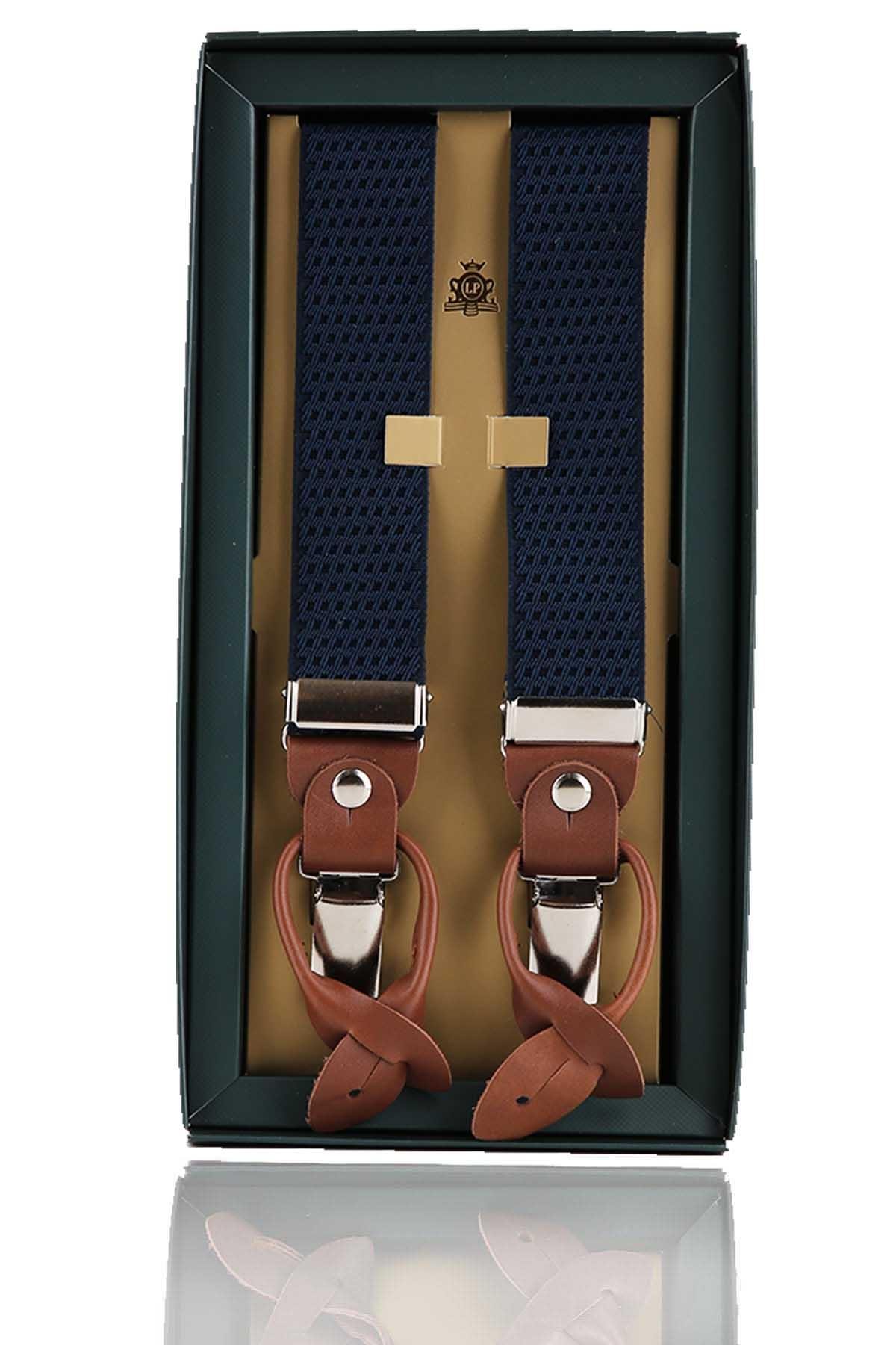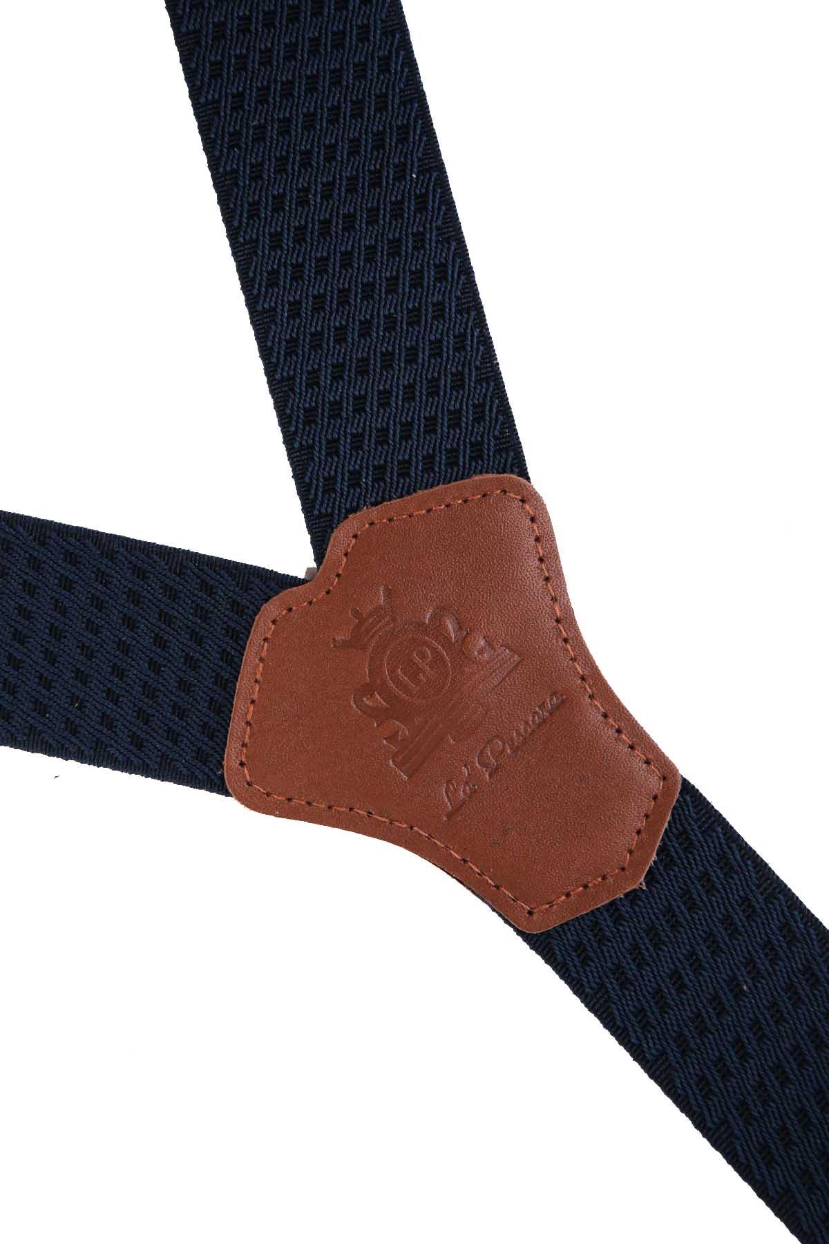 Lacivert Deri Bağlantılı Düğme Delikli Jakarlı Pantolon Askısı PAN137 (PAN137)