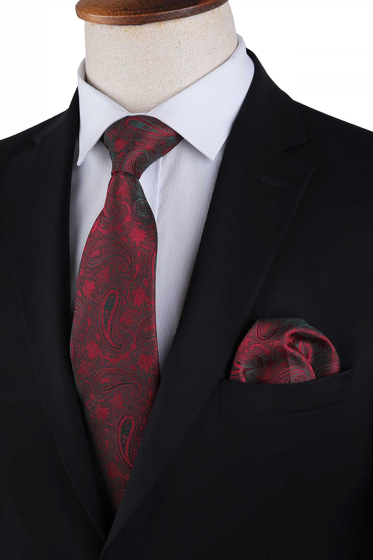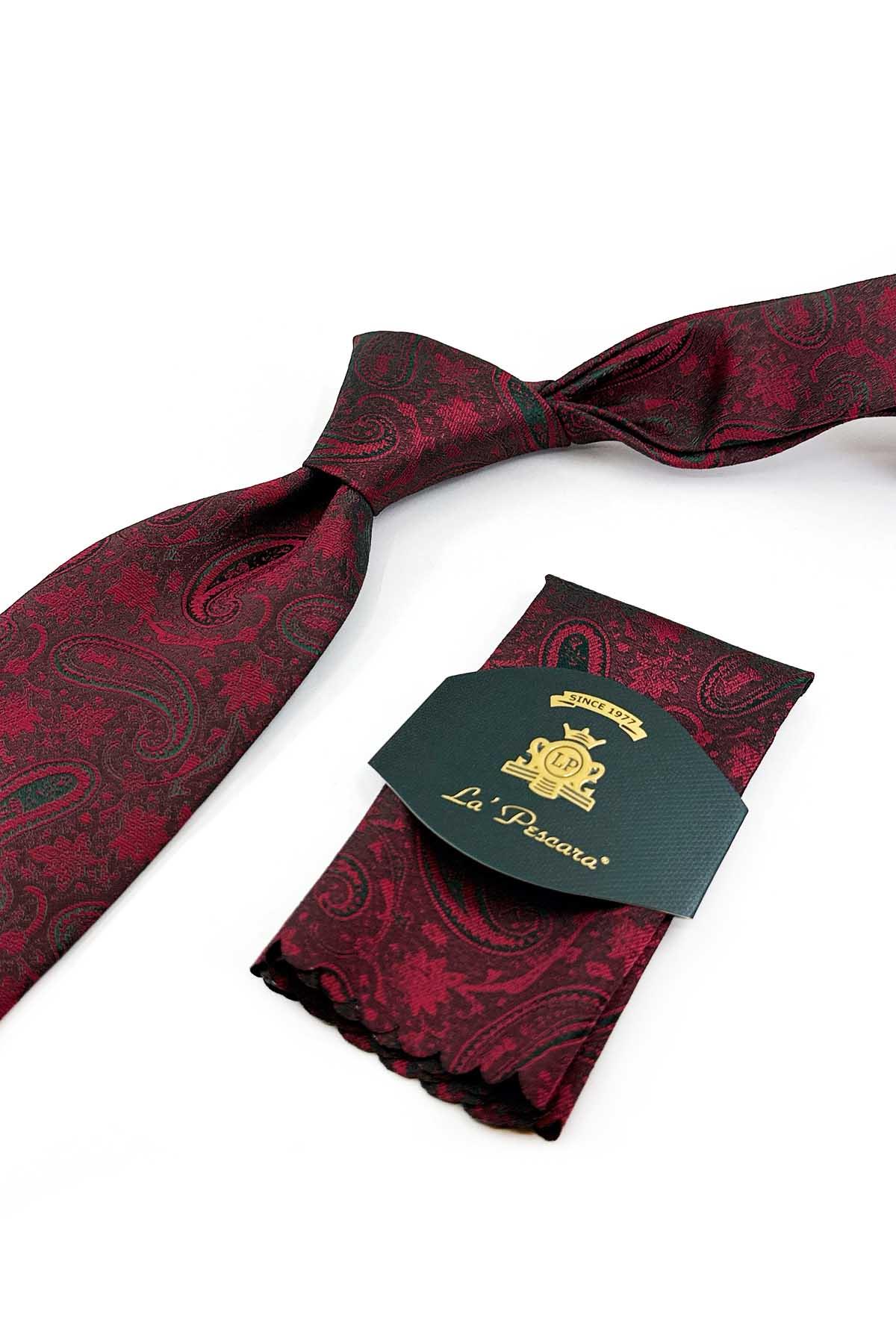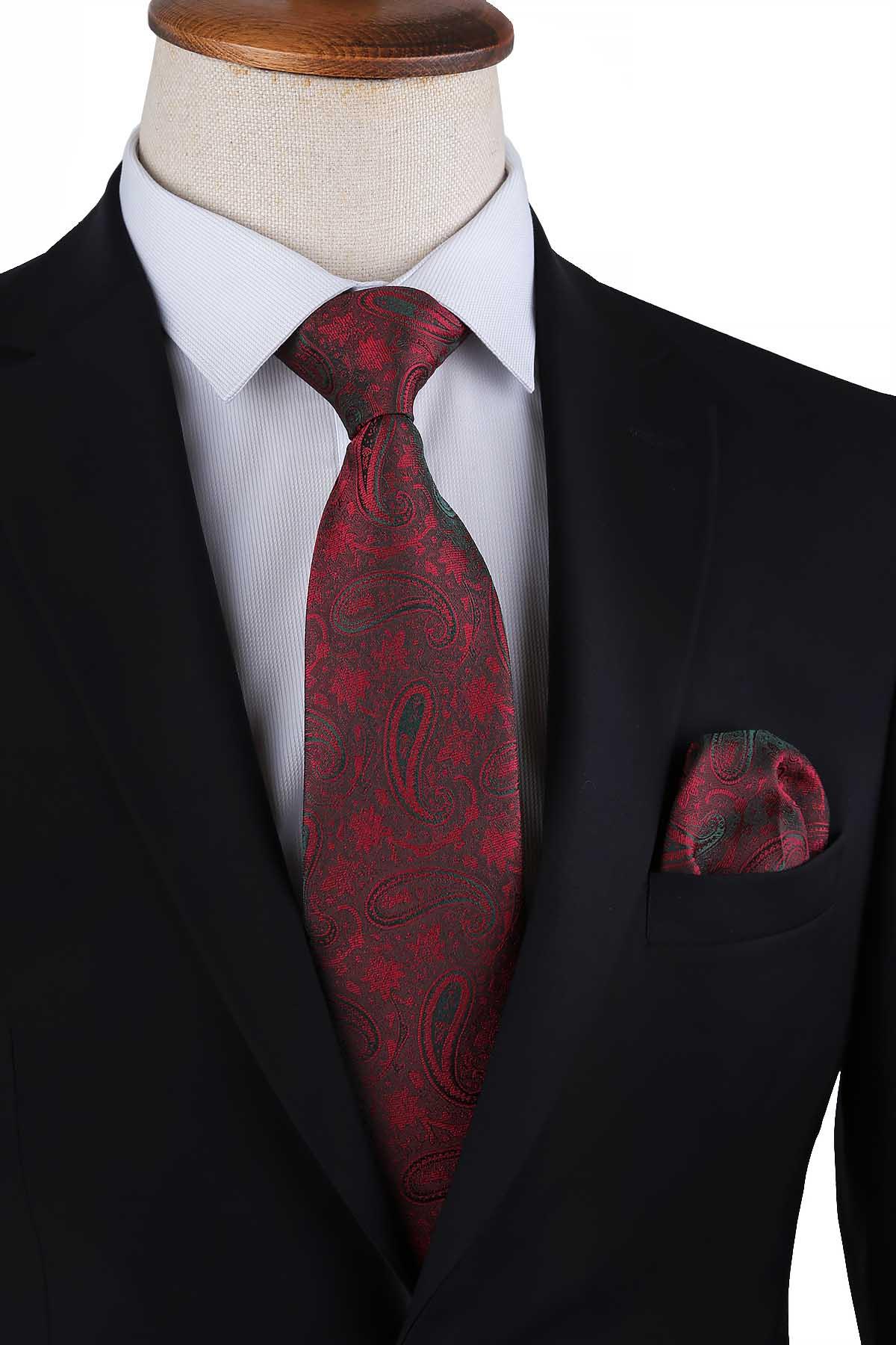 Bordo Şal Desen Mendilli Klasik Kravat KK13124 (KK13124)