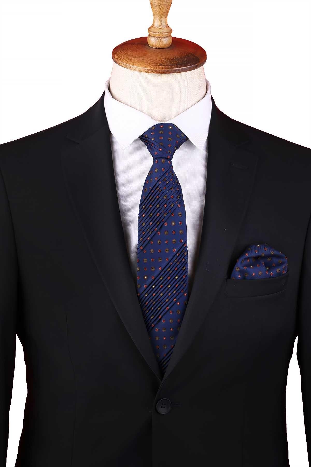Carbonora Style Lacivert Küçük Desen Piliseli Kravat CRK94 (CRK94)