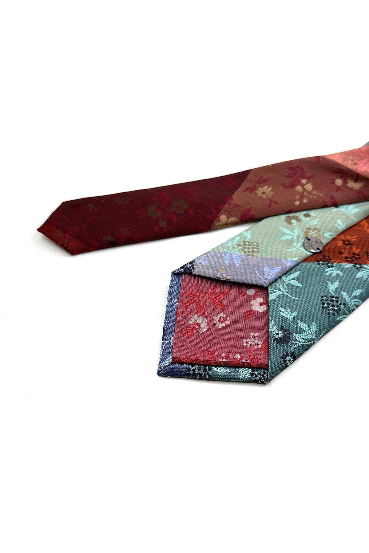 Çiçek Desen Çok Renkli Patchwork Klasik Kravat KK13384 (KK13384)