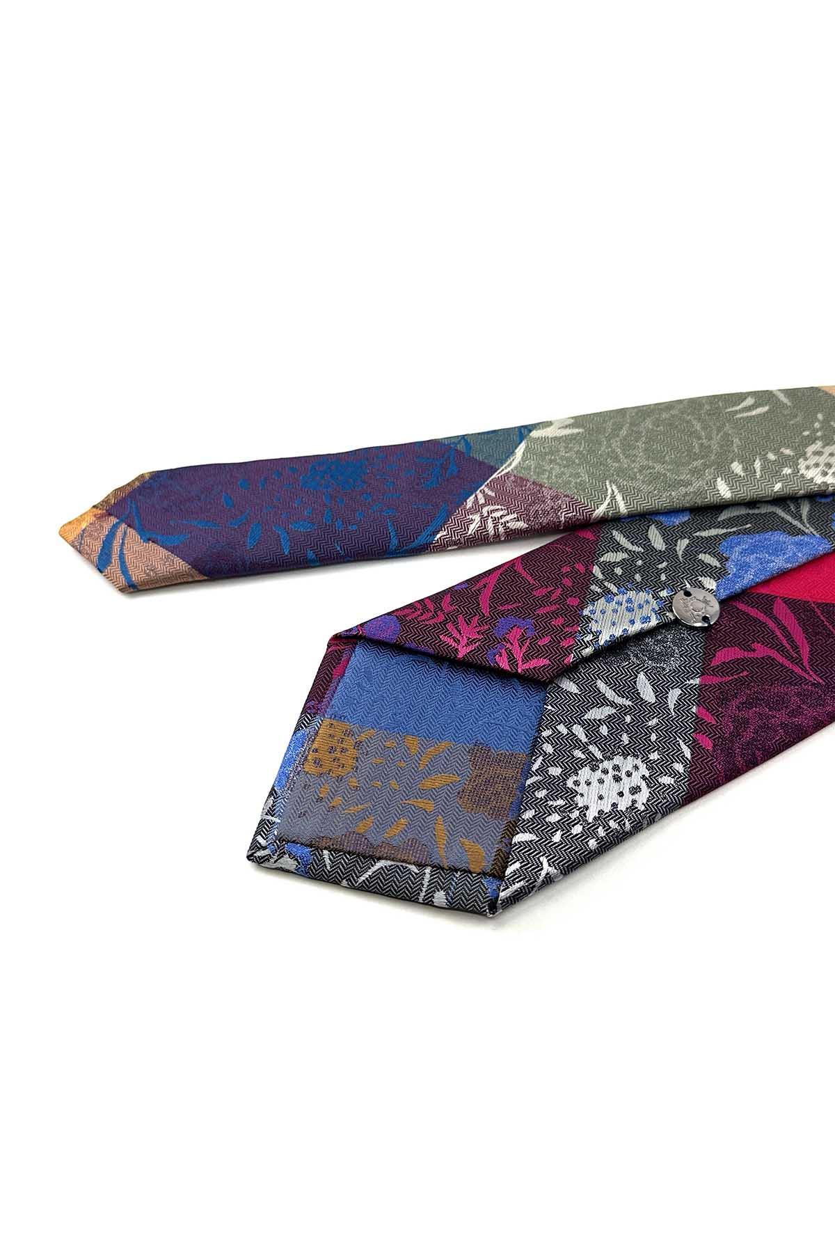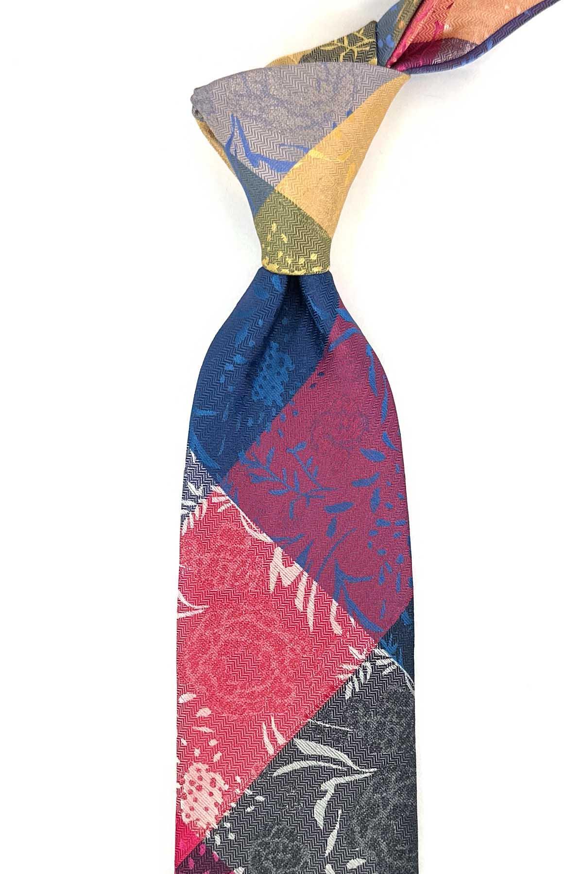 Çiçek Desen Çok Renkli Patchwork Kravat KK13222 (KK13222)