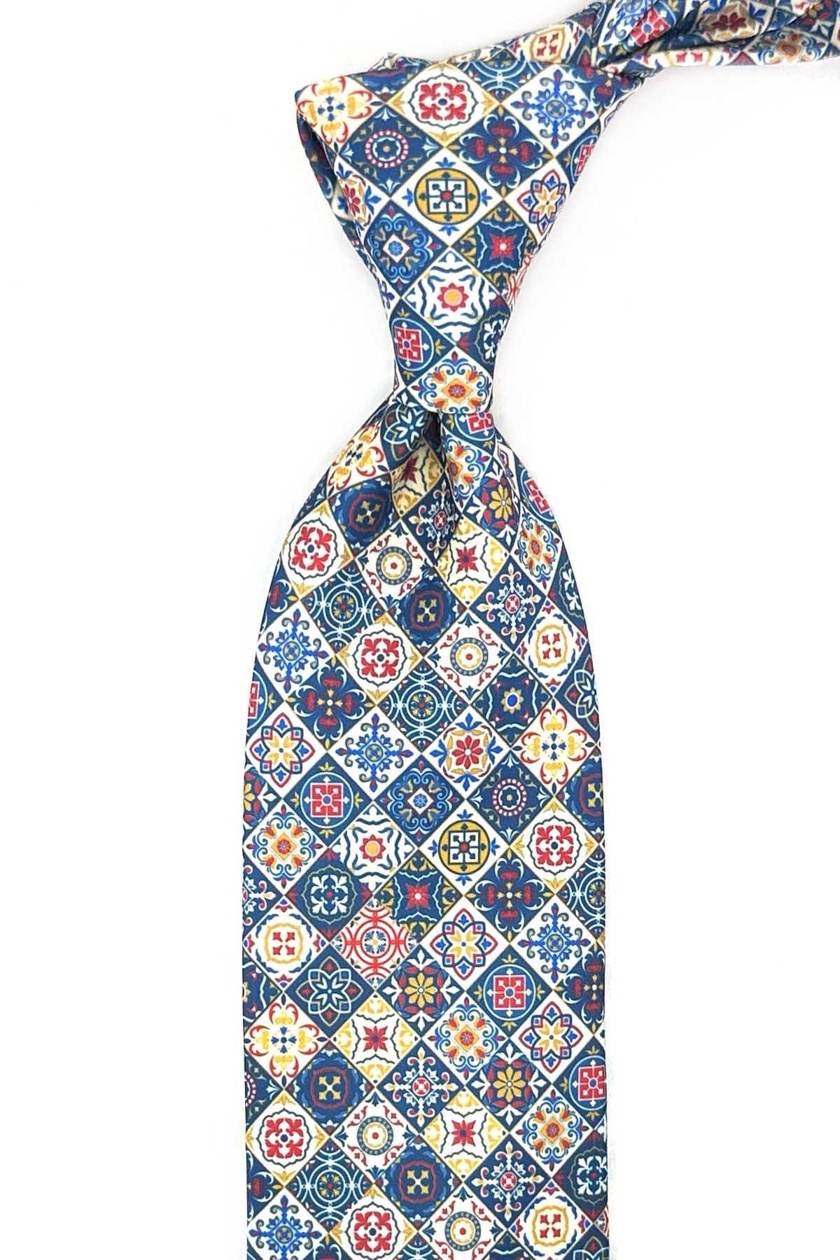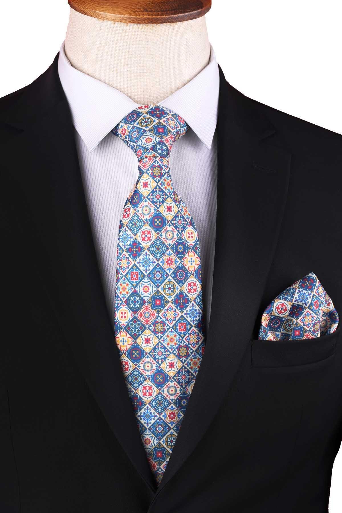 Çok Renkli Baskılı Mendilli Klasik Kravat KK13357 (KK13357)