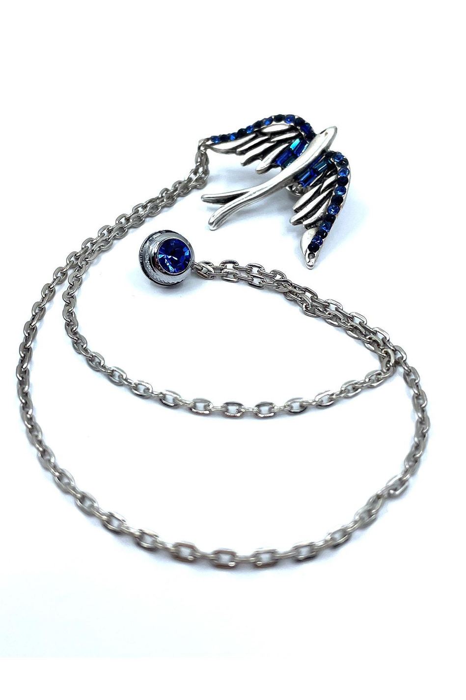 Gümüş Renk Kuş Motif Mavi Taşlı Ceket Yaka İğnesi YI380 (YI380)