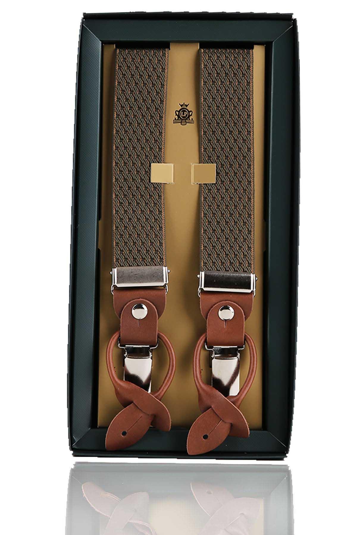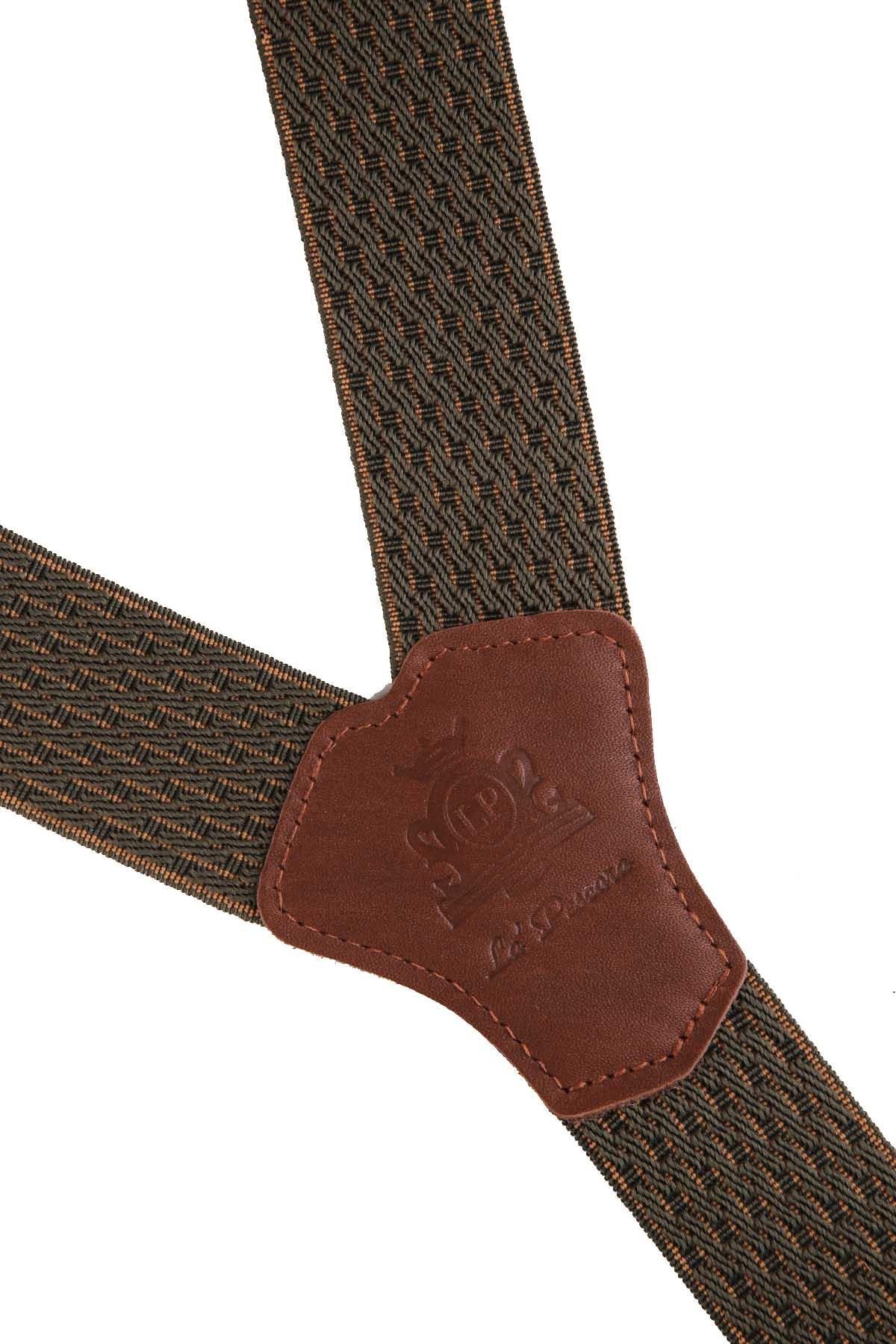Haki Deri Bağlantılı Düğme Delikli Jakarlı Pantolon Askısı PAN151 (PAN151)