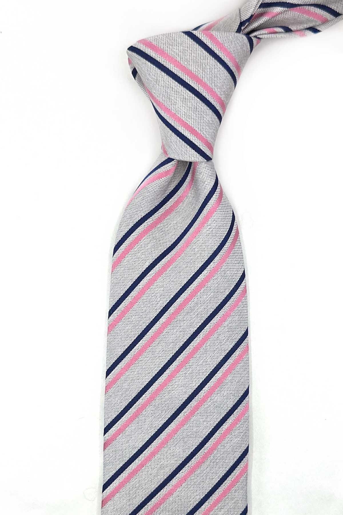 Hasketon Style Gri Çizgi Desen İtalyan İpek Kravat İK2009 (İK2009)