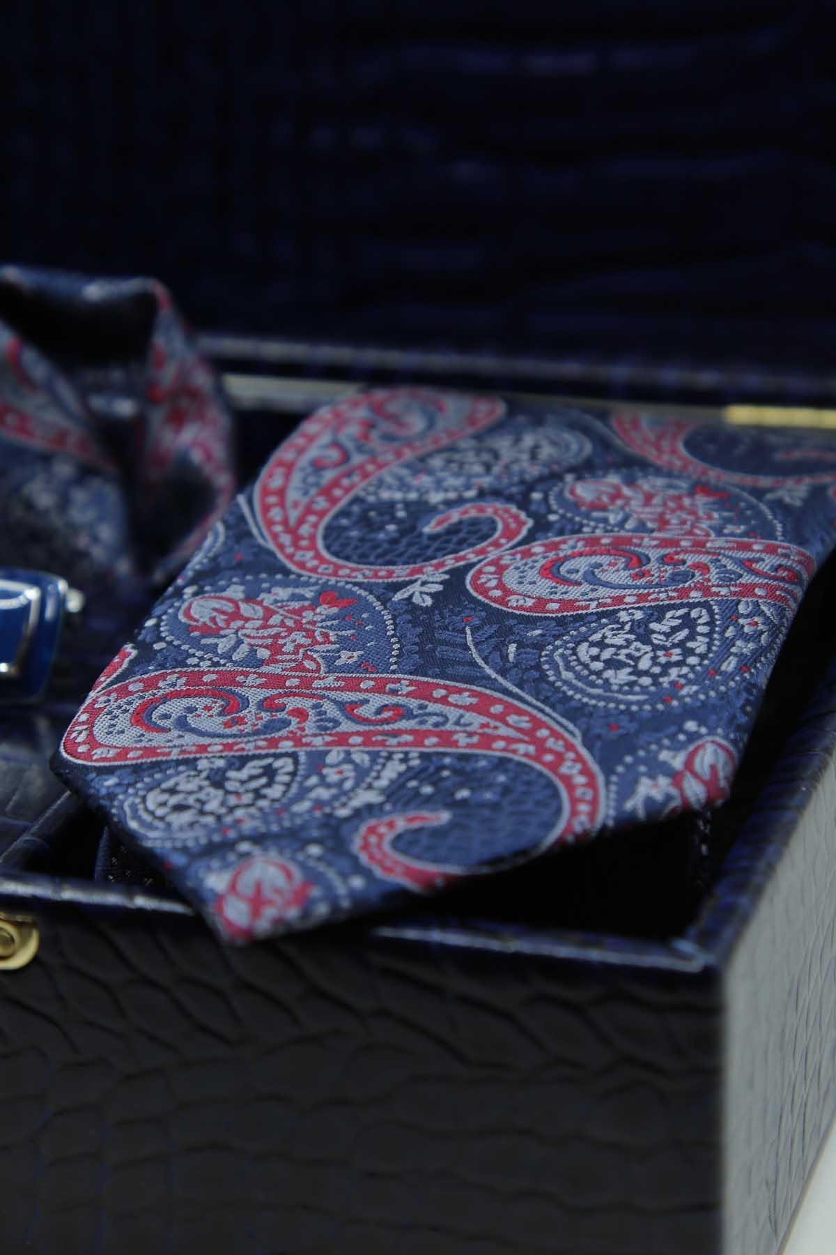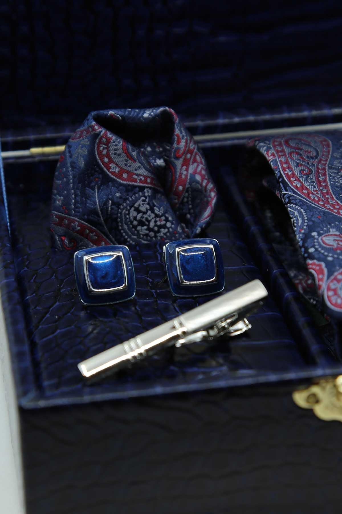Lacivert Erkek Hediye Kutusu - Mendilli Kravat Kol Düğmesi Kravat İğnesi KMK107 (KMK107)
