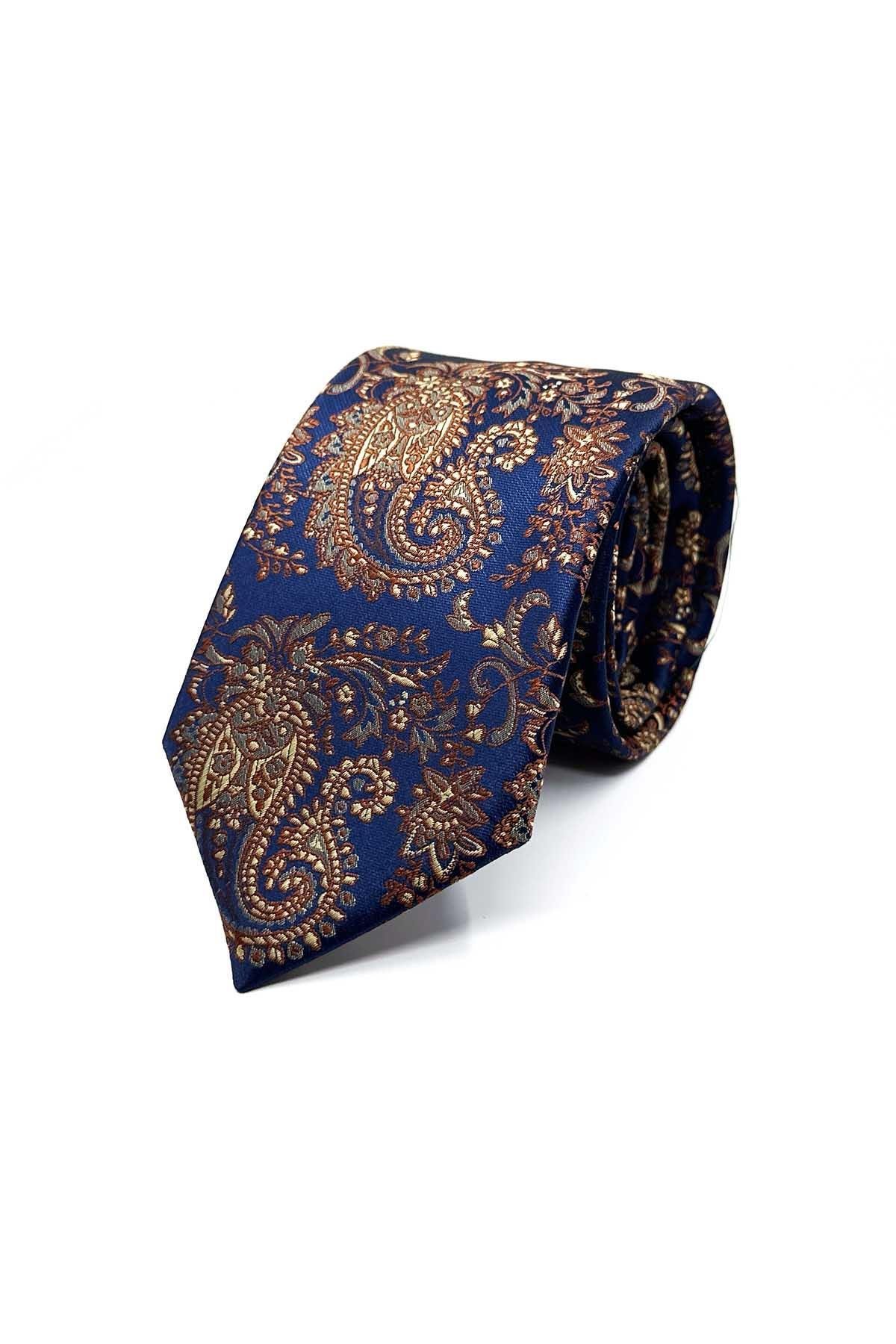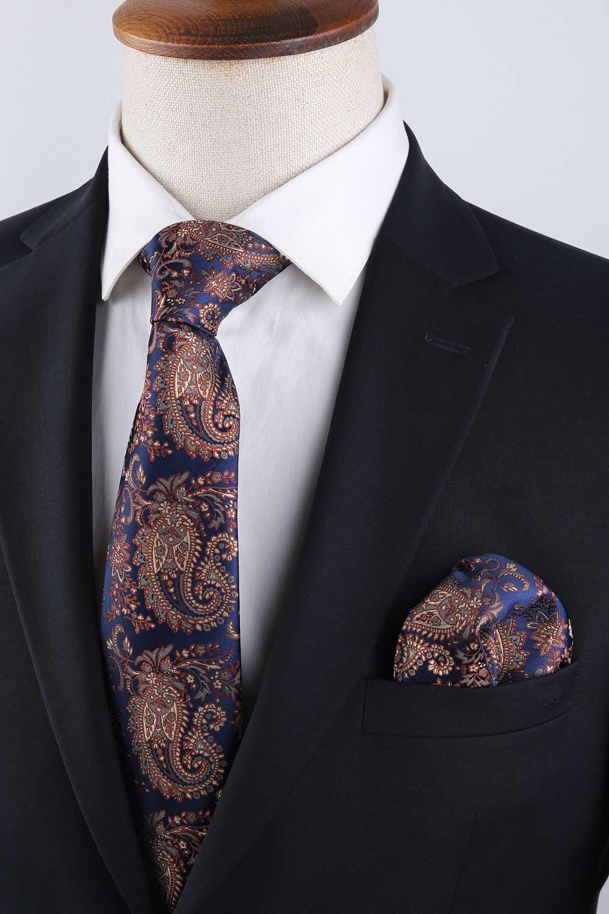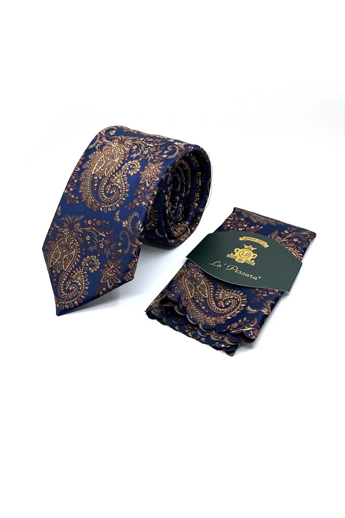Lacivert Şal Desen Mendilli Klasik Kravat KK13122 (KK13122)