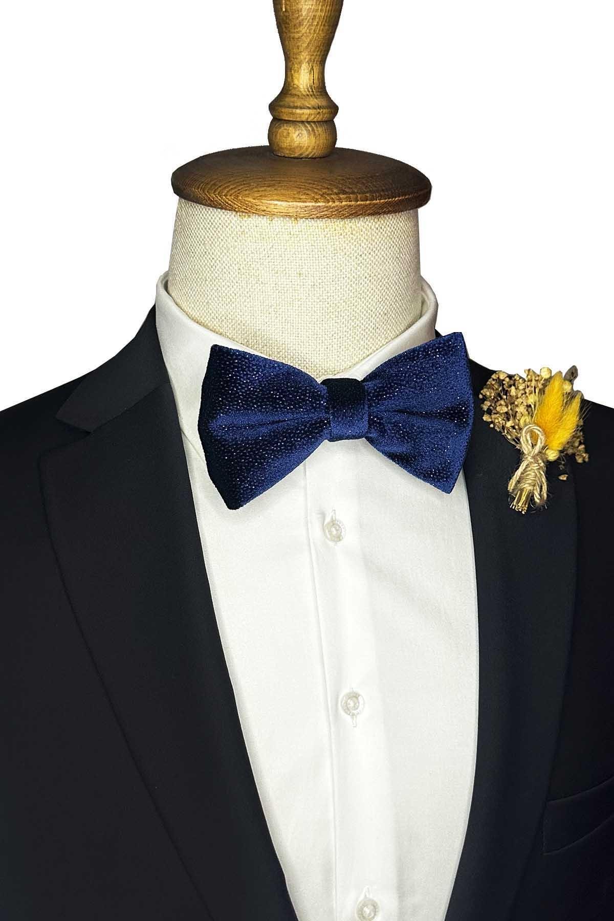 Lacivert Simli Kadife Damatlık Papyon P1901 (P1901)