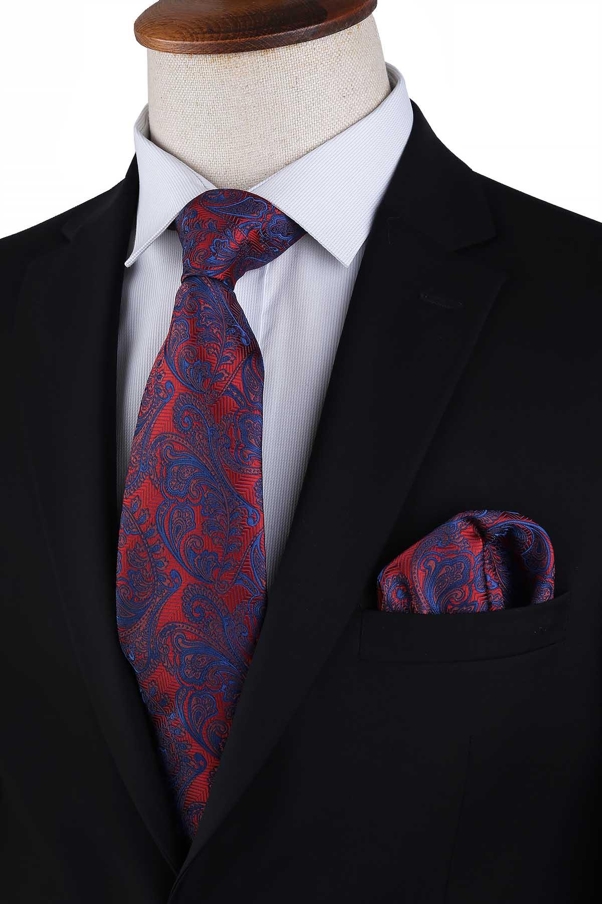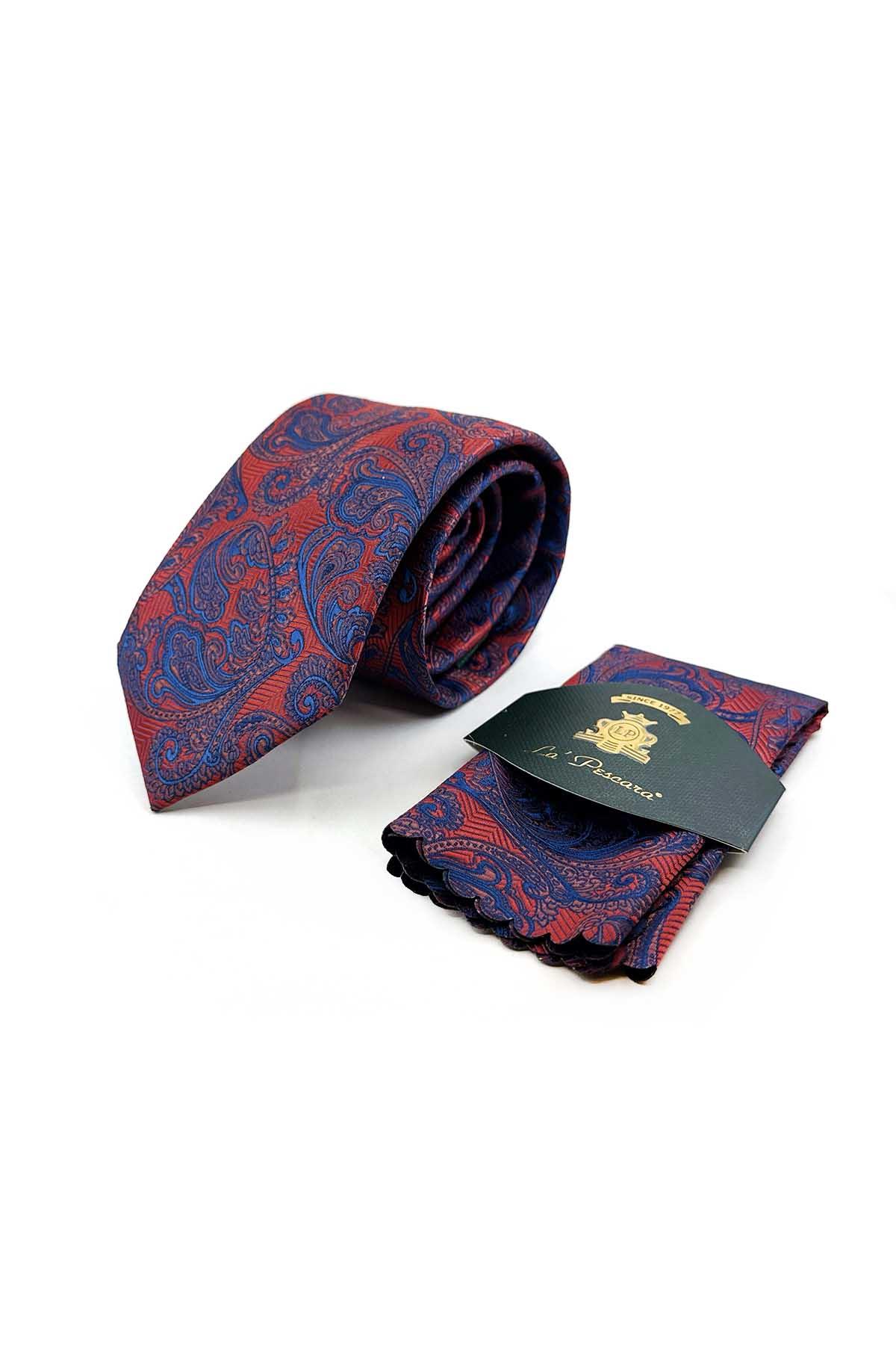 Kravat ile aynı renk ve desende lazer kesim mendil bulunmaktadır