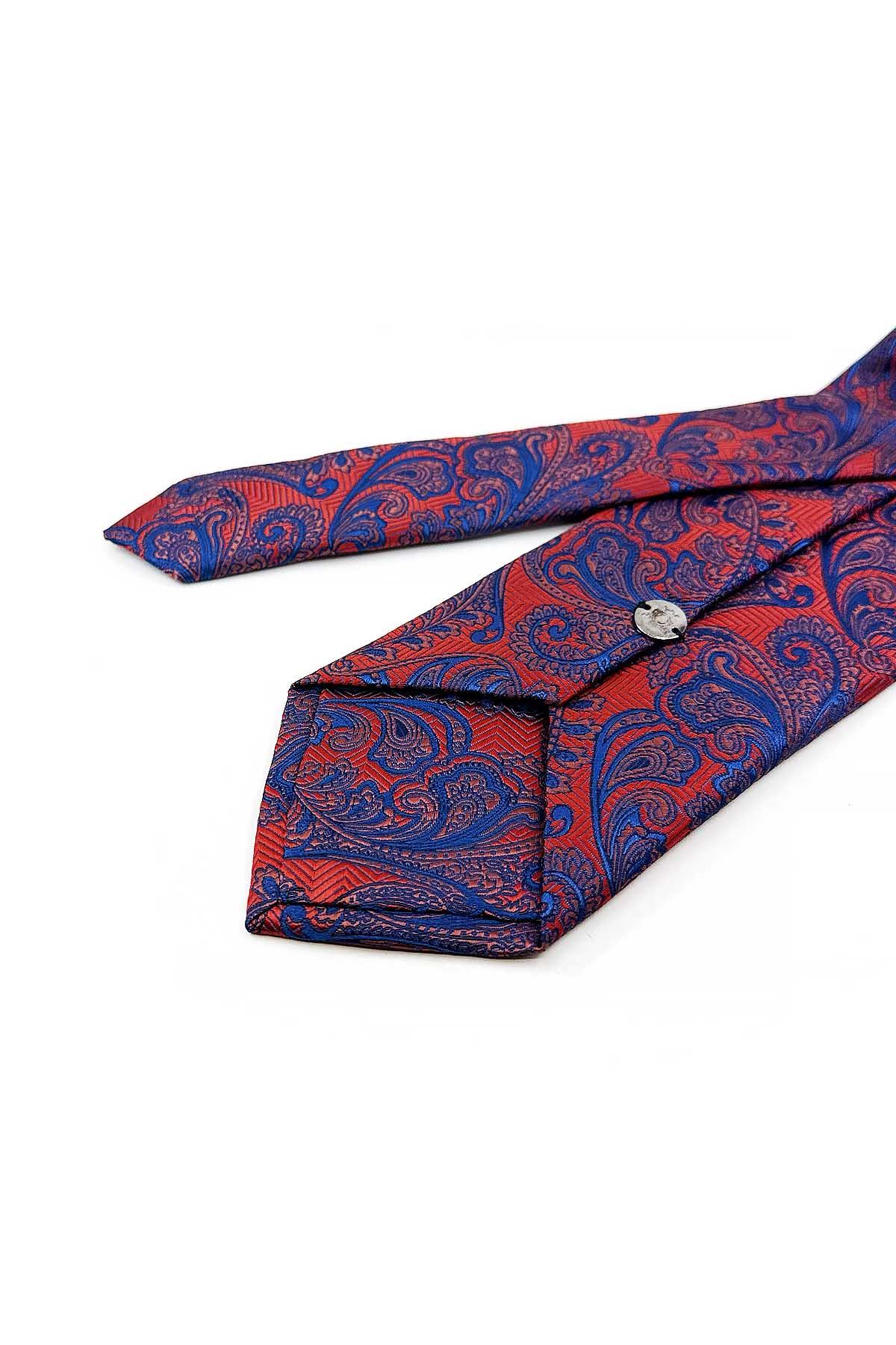 Lacivert - Turuncu Şal Desen Mendilli Klasik Kravat KK13128 (KK13128)