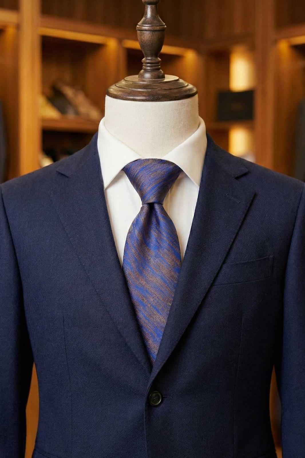 Mavi Motif Desen Mendilli Klasik Kravat KK10519 (KK10519)