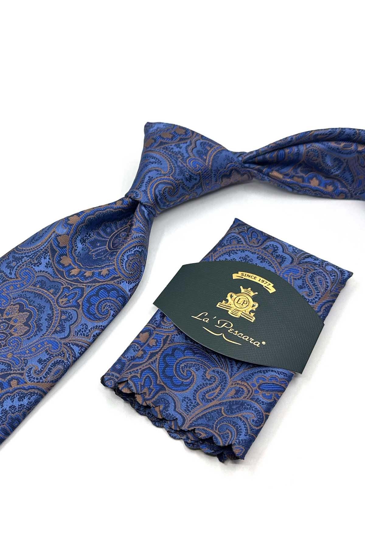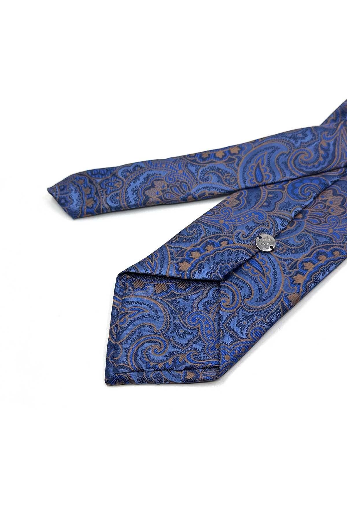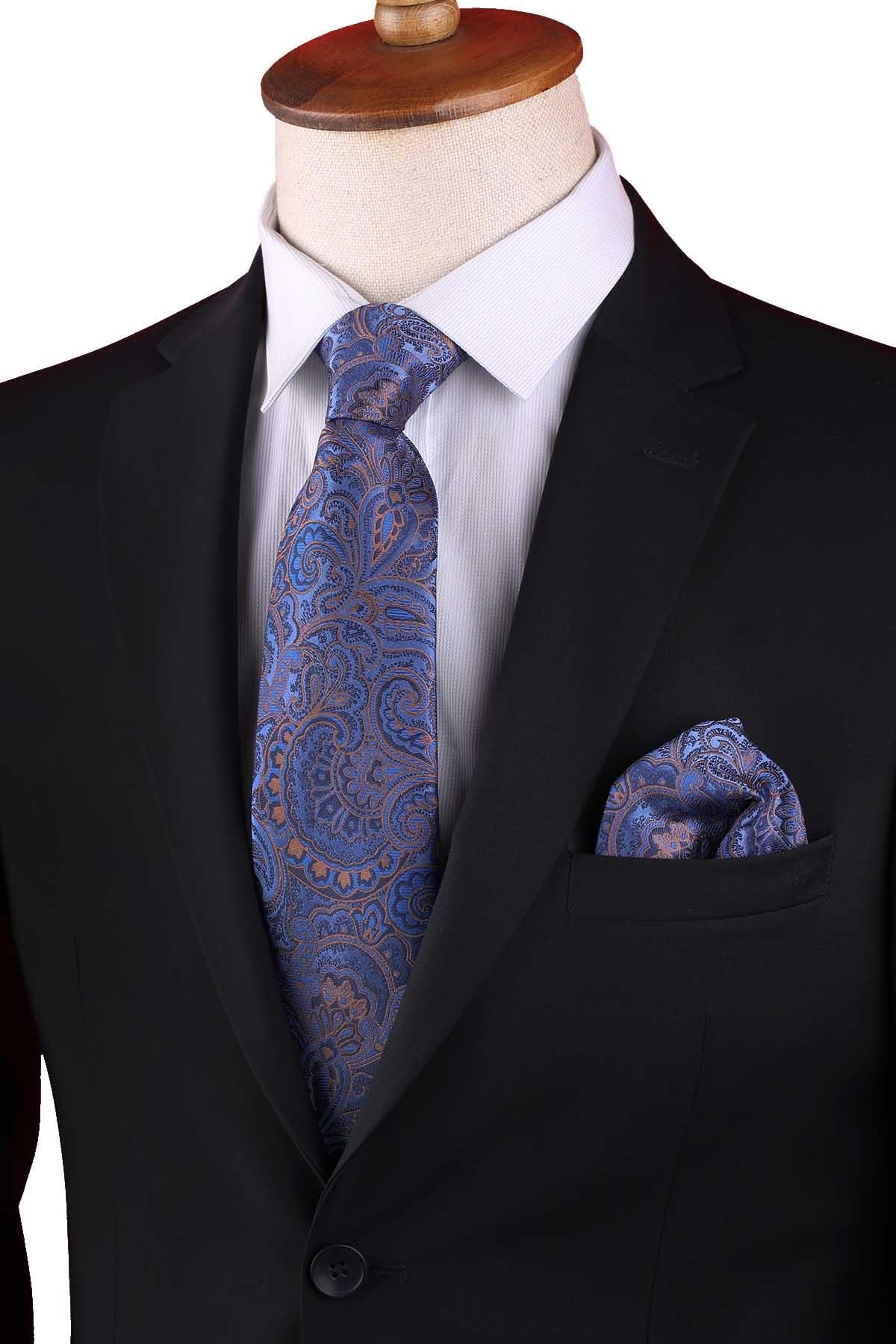 Mavi Şal Desen Mendilli Klasik Kravat KK13125 (KK13125)