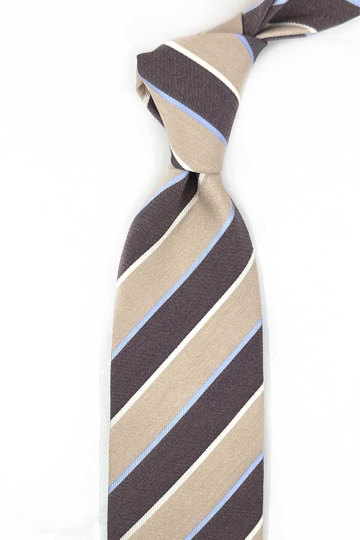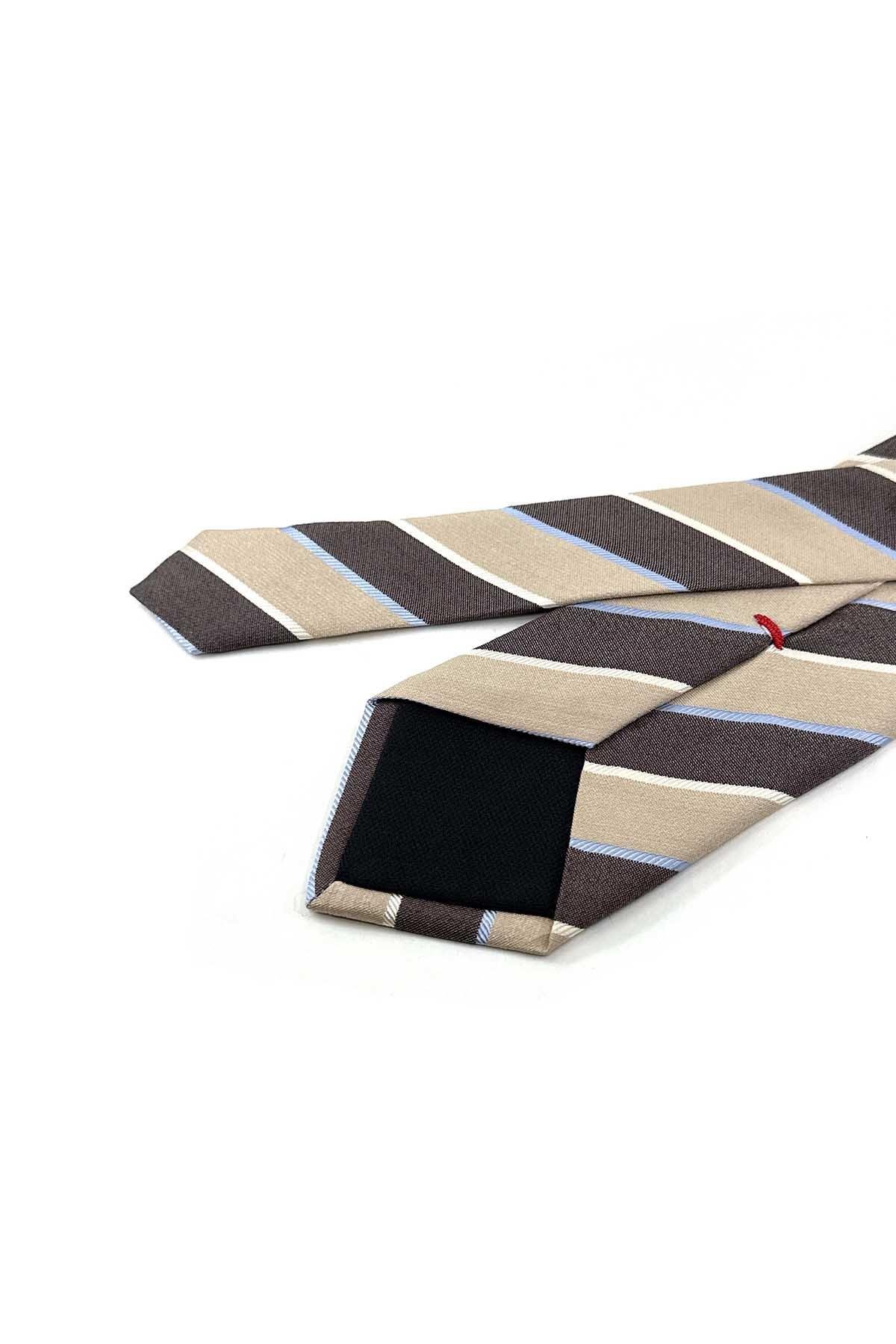 Milden Style Bej Çizgi Desen İtalyan İpek Kravat İK2007 (İK2007)
