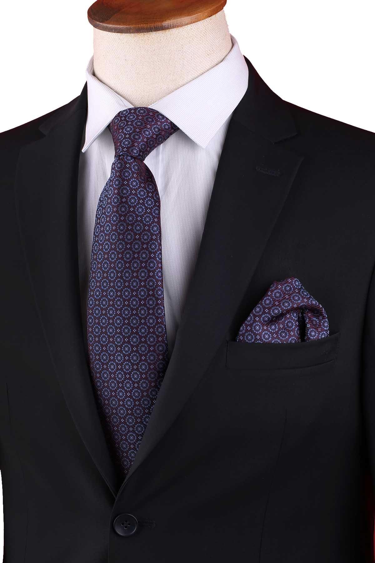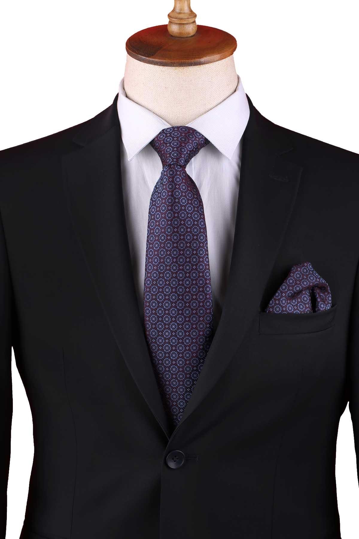 Mürdüm Çiçek Desen Mendilli Klasik Kravat KK13133 (KK13133)