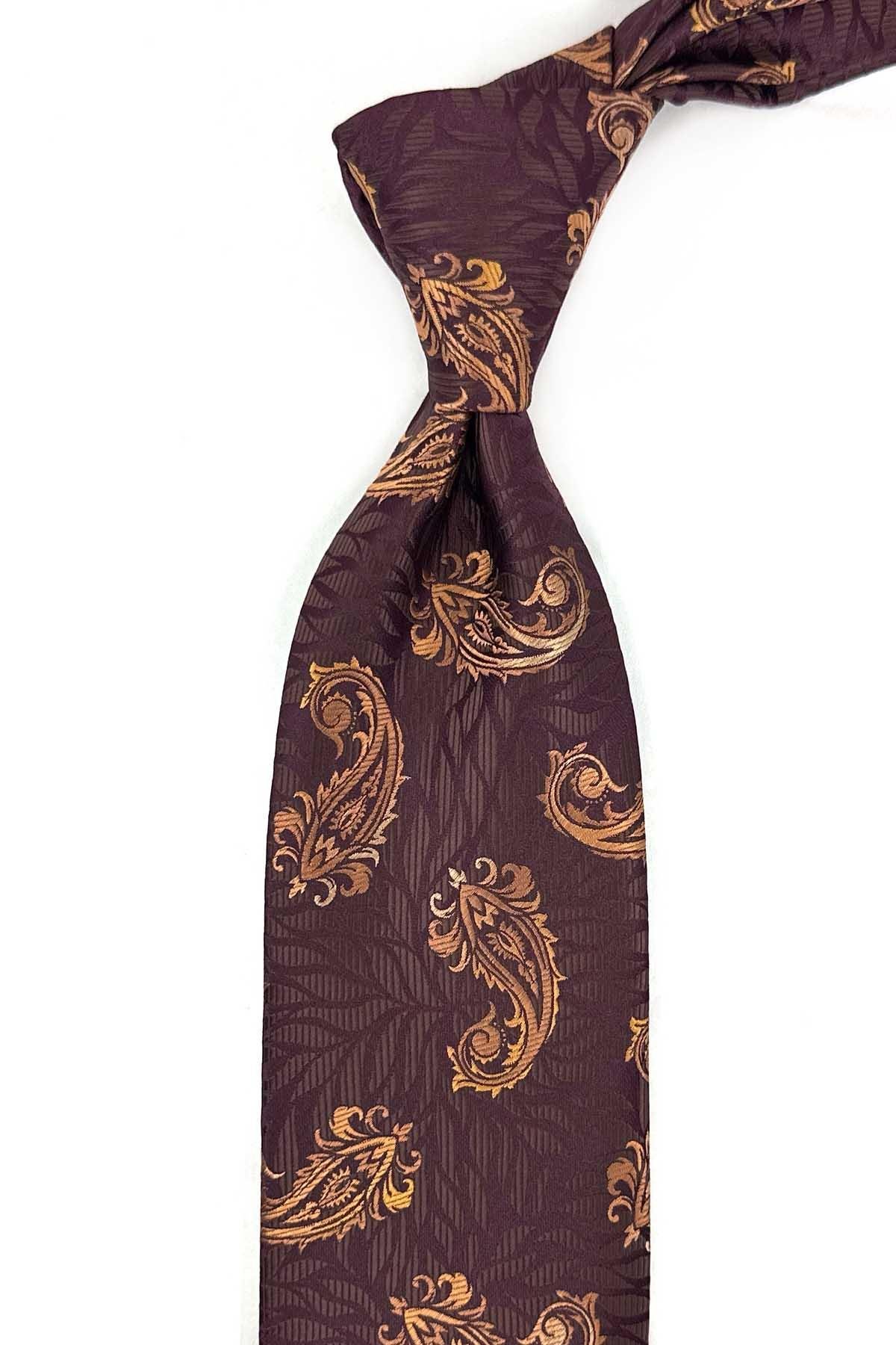 Mürdüm - Kahve Şal Desen Mendilli Klasik Kravat KK13305 (KK13305)