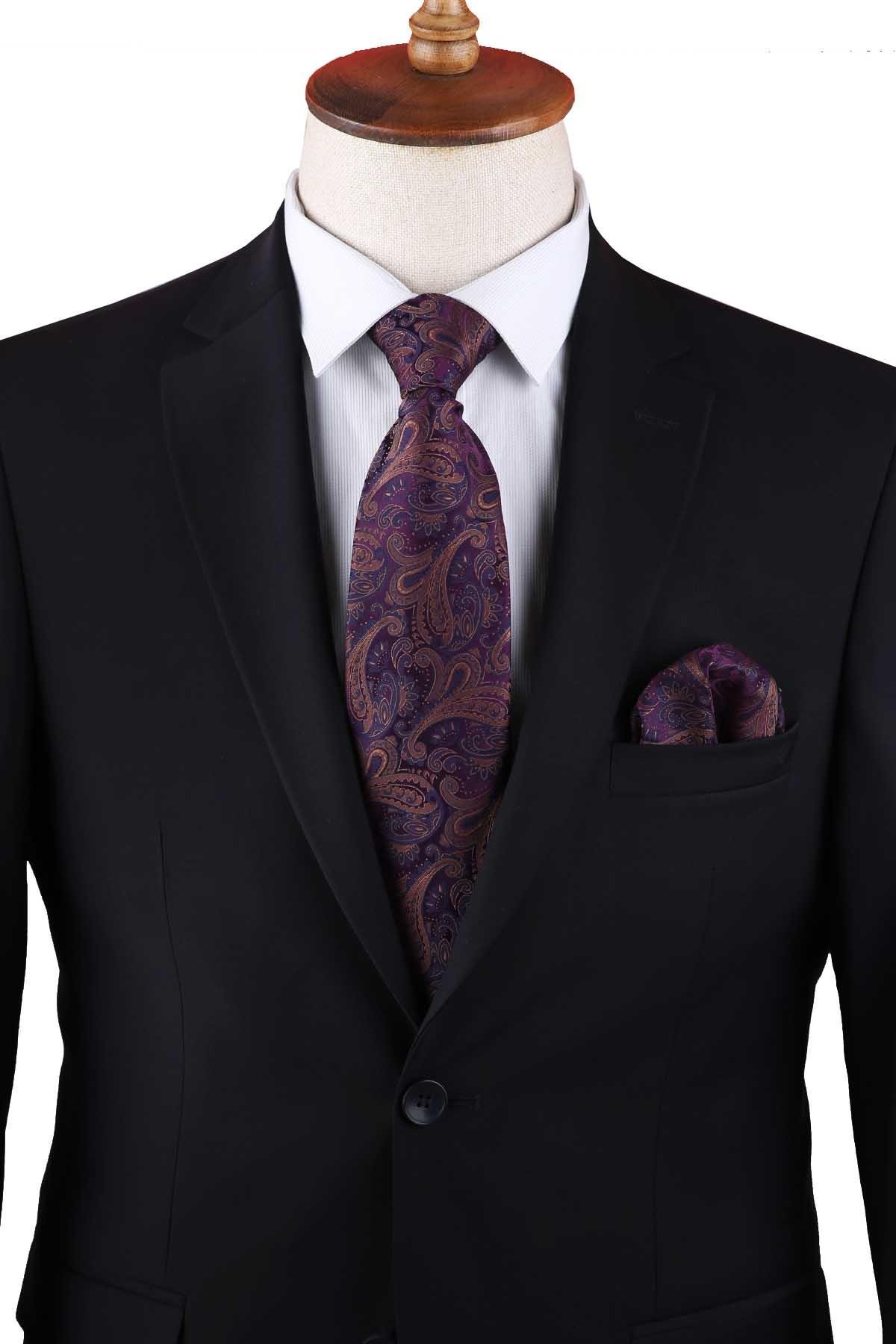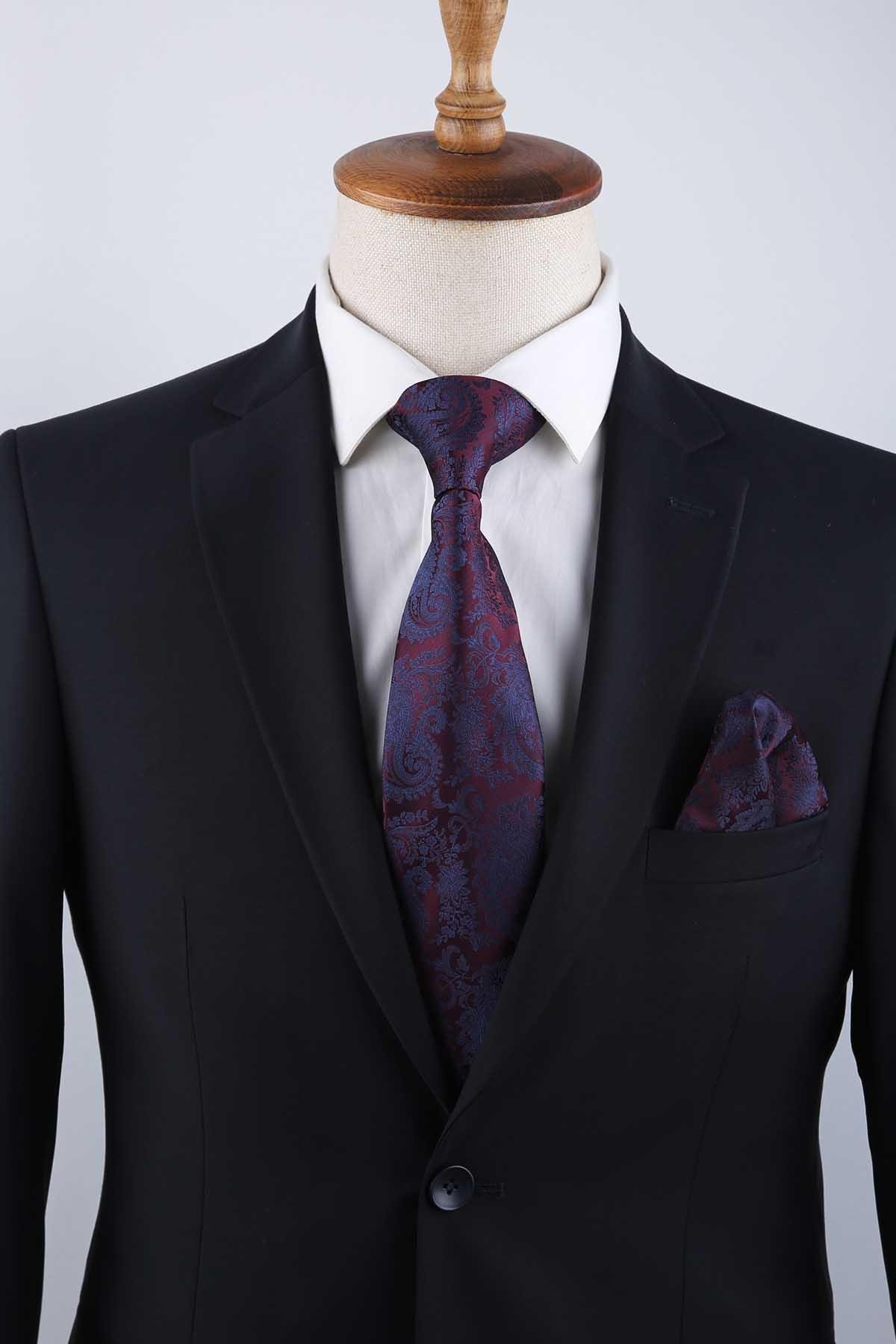 Mürdüm Şal Desen Mendilli Klasik Kravat KK13127 (KK13127)