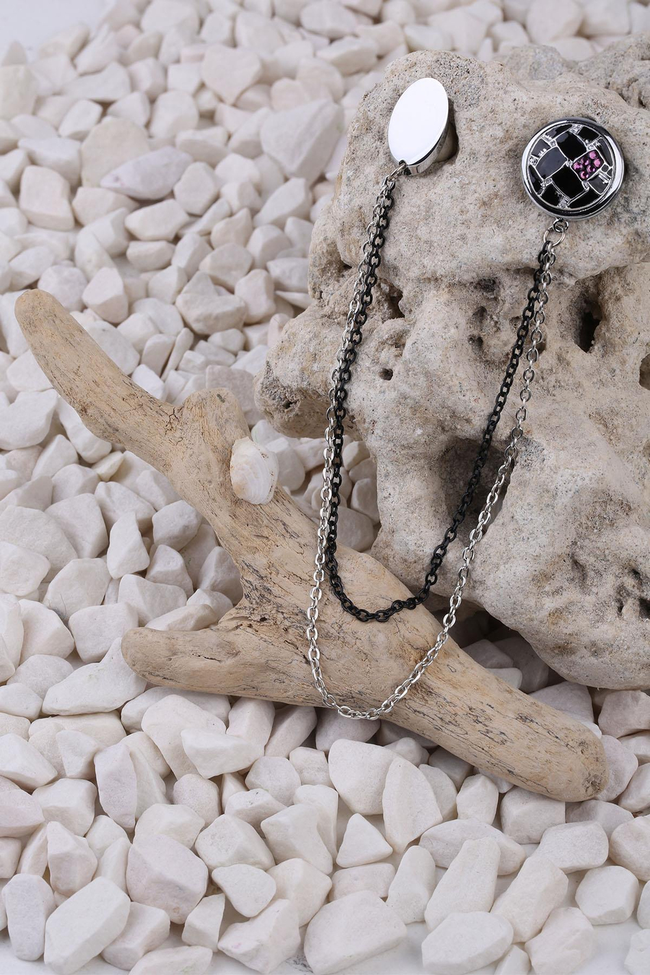 Pembe Kristal Taşlı Zincirli Yaka İğnesi YI208 (YI208)