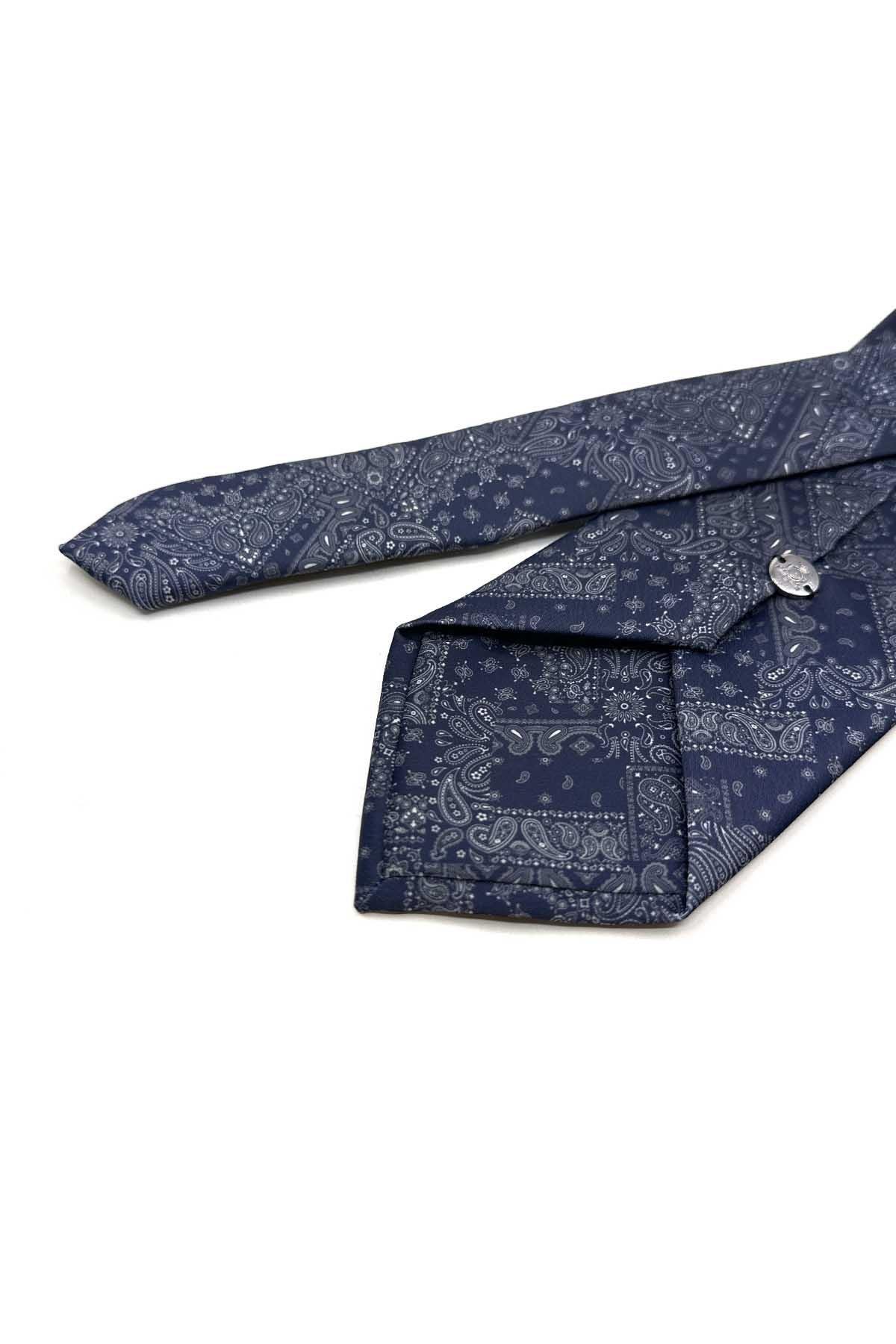 Şal Desen Lacivert Patchwork Klasik Kravat KK13360 (KK13360)