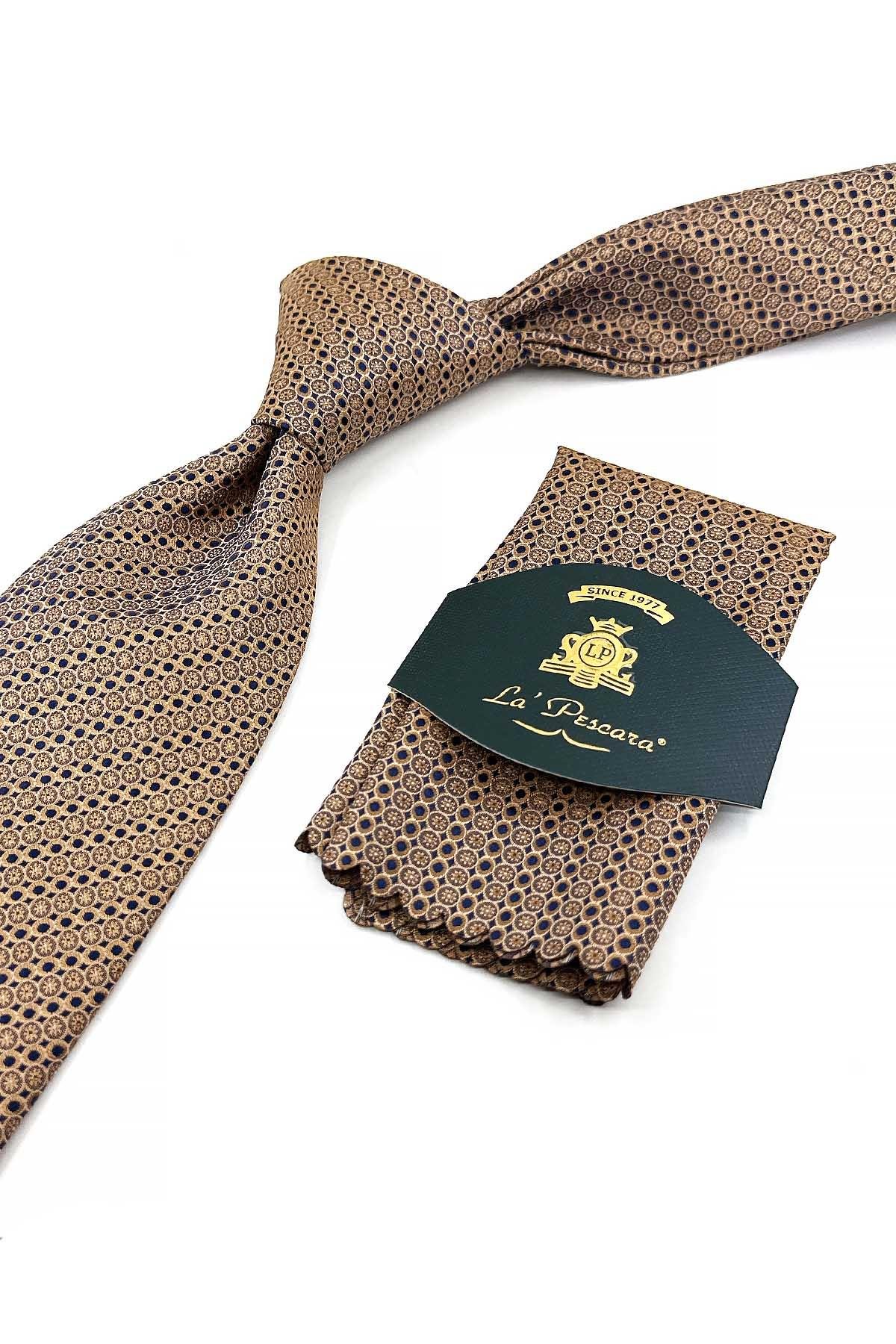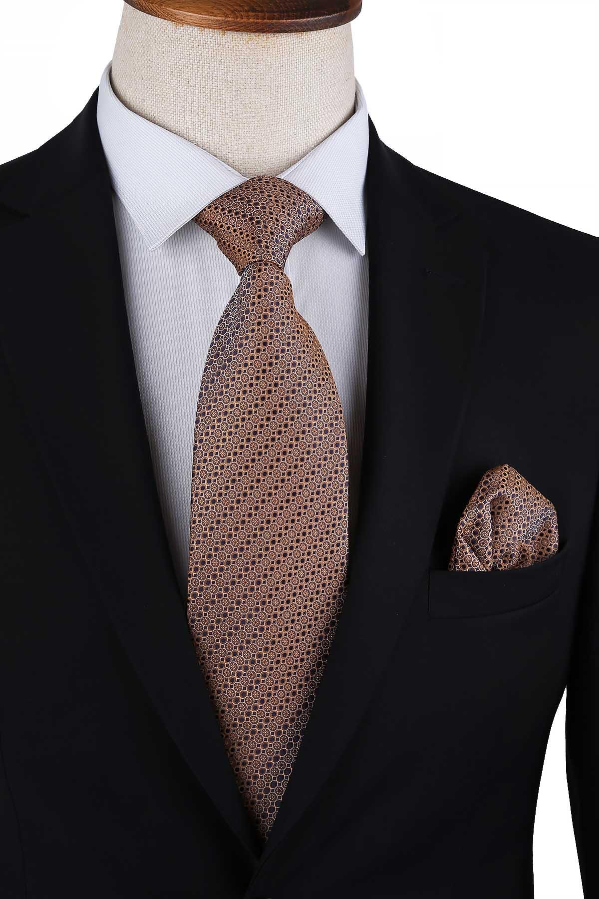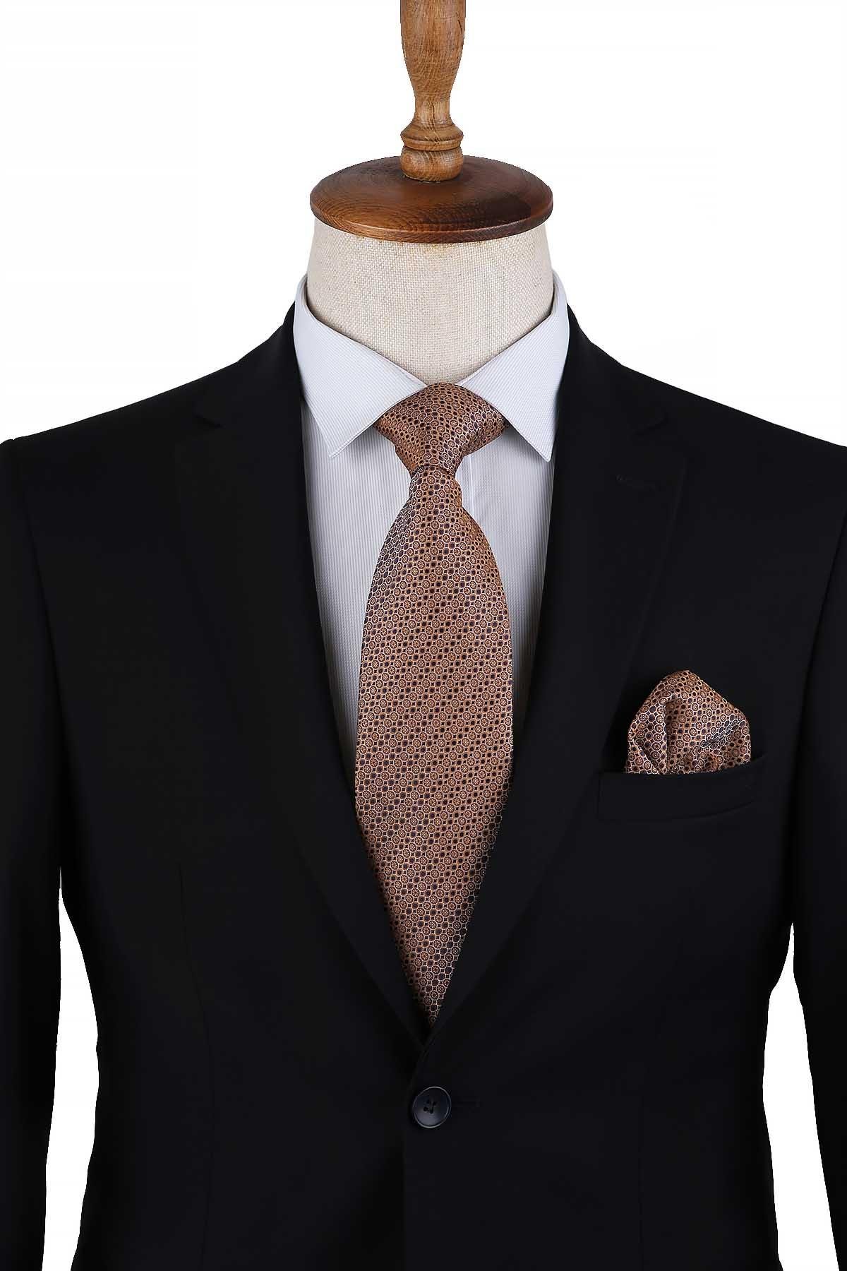 Kravat ile aynı renk ve desende lazer kesim mendil bulunmaktadır