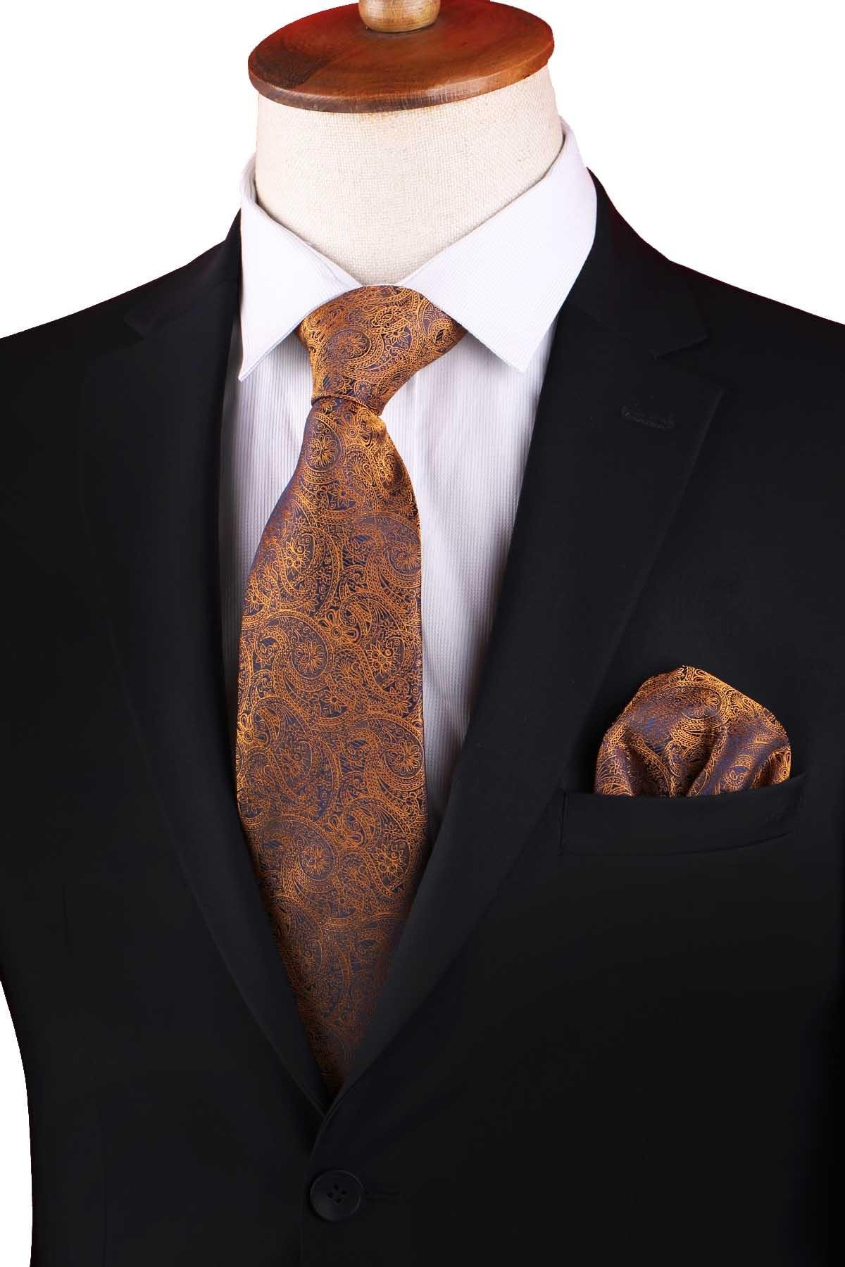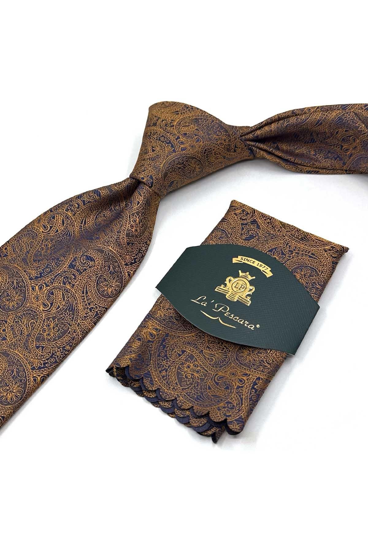 Sarı Şal Desen Mendilli Klasik Kravat KK13211 (KK13211)