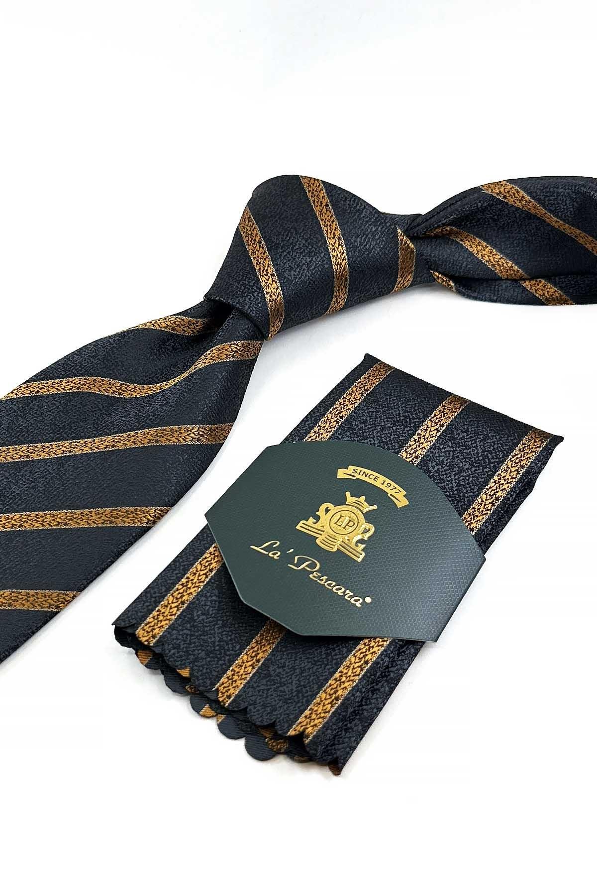 Siyah Çizgi Desen Mendilli Klasik Kravat KK12667 (KK12667)