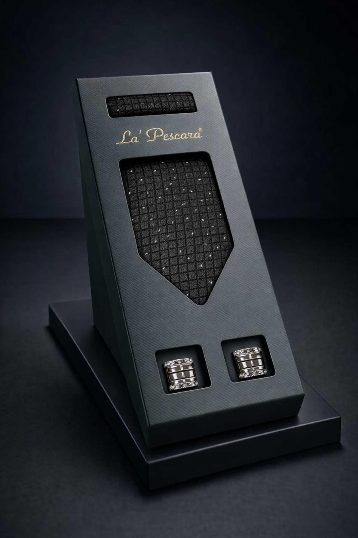 Siyah Mendilli Klasik Kravat Kol Düğmesi Erkek Hediye Seti OS594 (OS594)