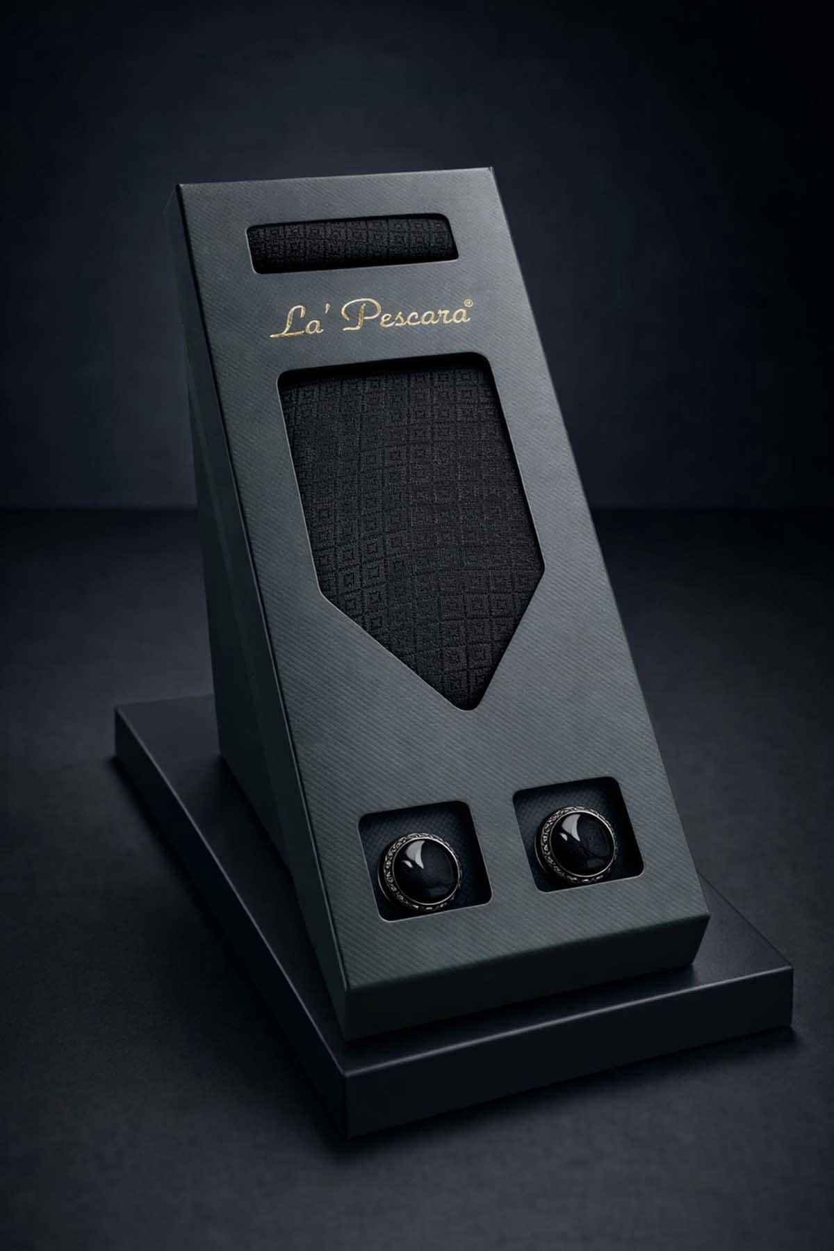 Siyah Mendilli Klasik Kravat Kol Düğmesi Erkek Hediye Seti OS599 (OS599)