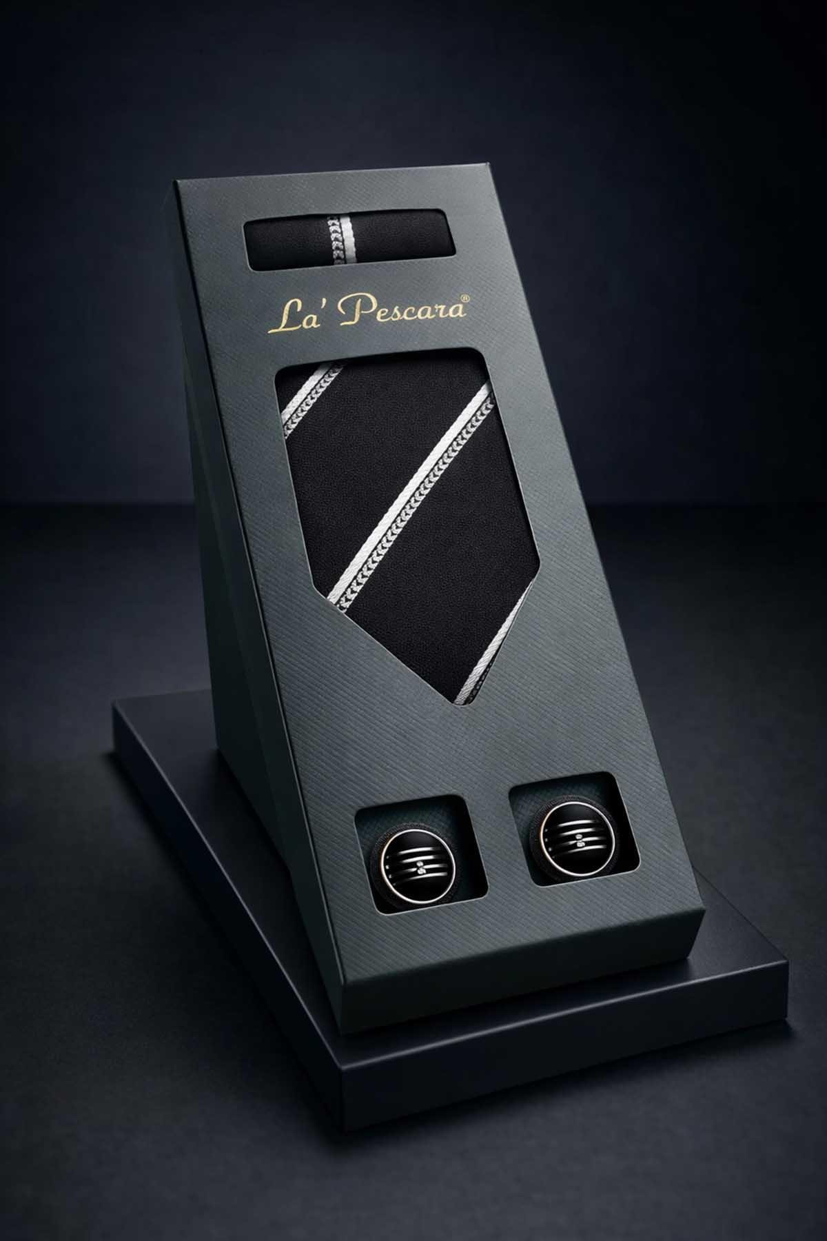 Siyah Mendilli Klasik Kravat Kol Düğmesi Erkek Hediye Seti OS602 (OS602)