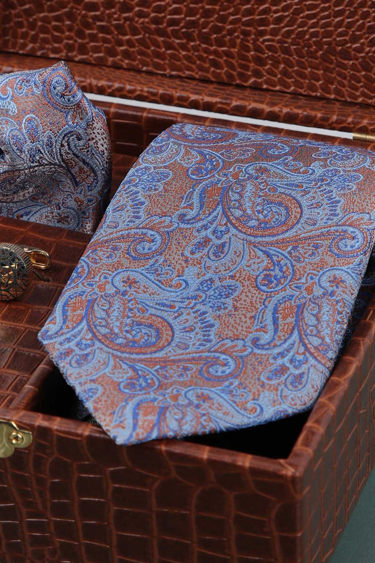 Taba Erkek Hediye Kutusu - Mendilli Kravat Kol Düğmesi Kravat İğnesi KMK77 (KMK77)