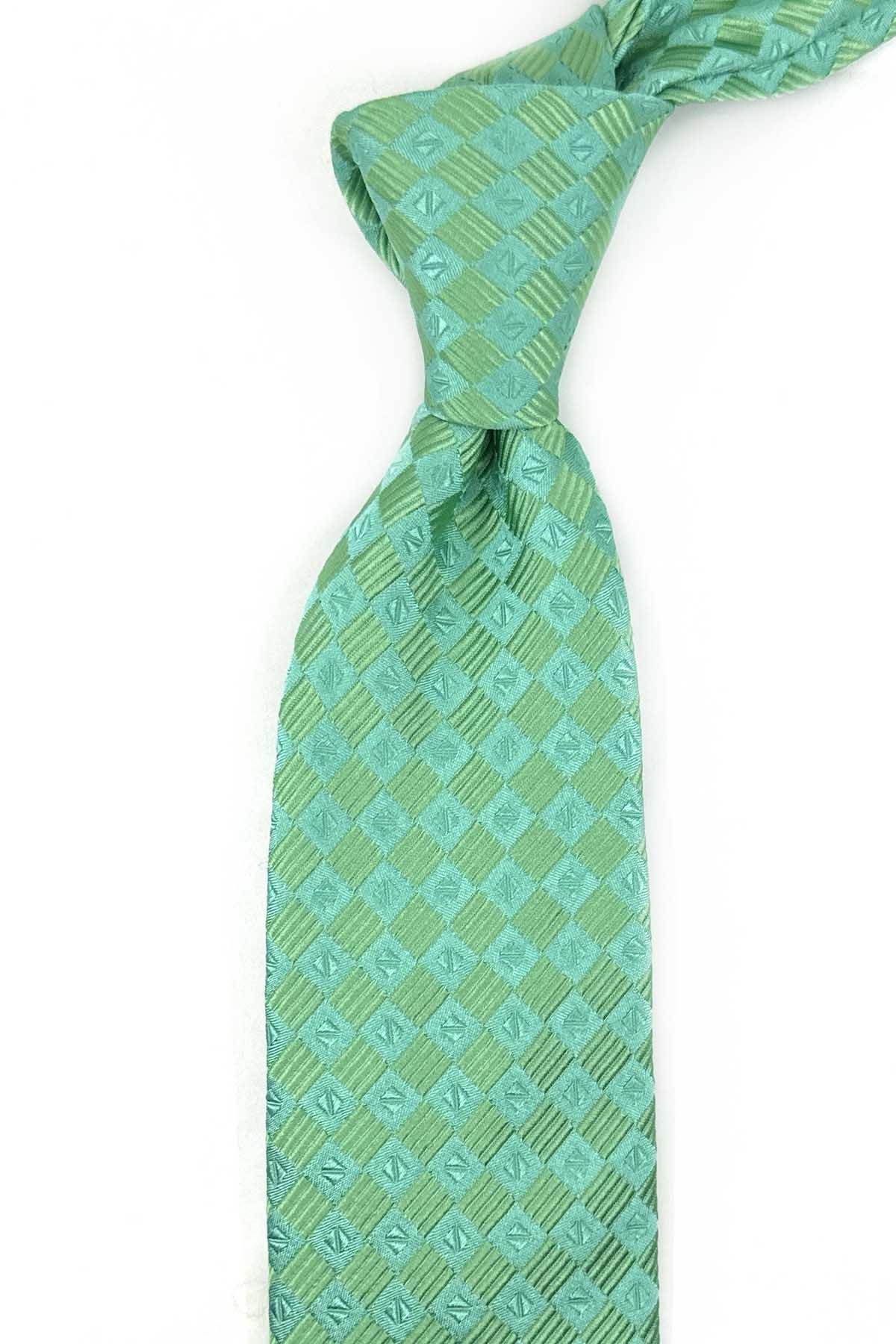 Thurgarton Style Yeşil Kare Desen İtalyan İpek Kravat İK2022 (İK2022)