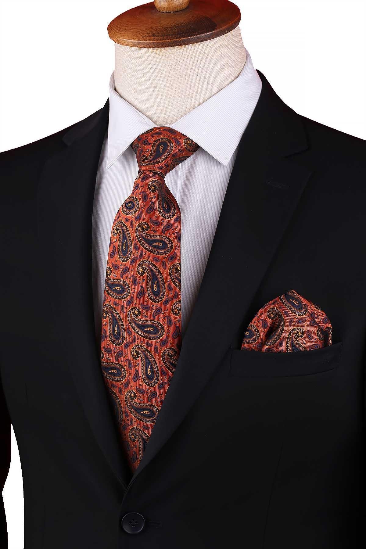 Turuncu Şal Desen Mendilli Klasik Kravat KK13299 (KK13299)