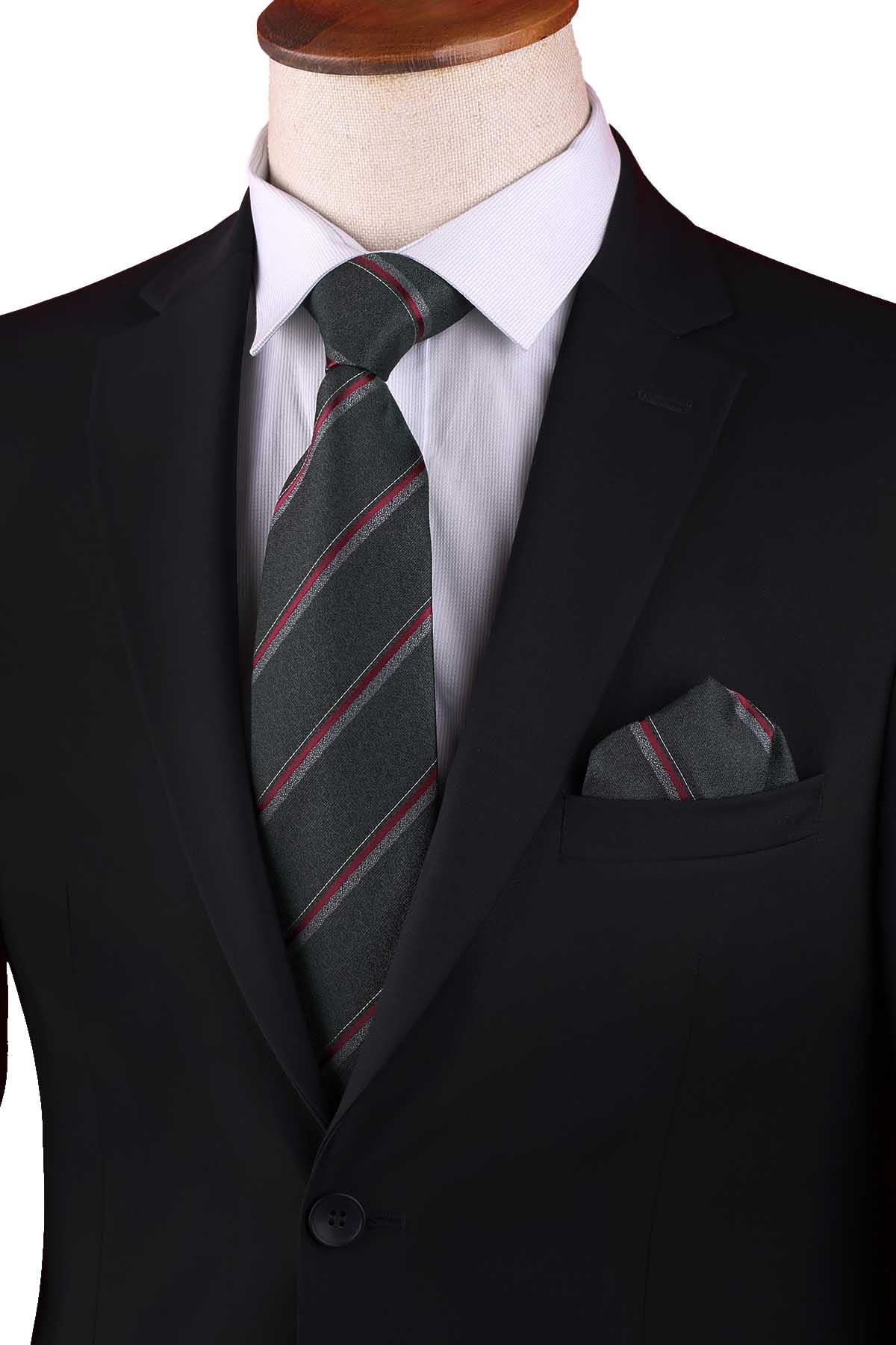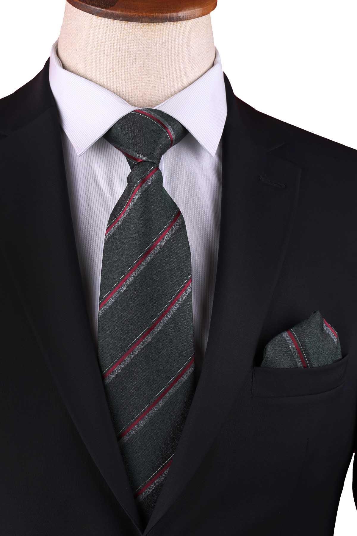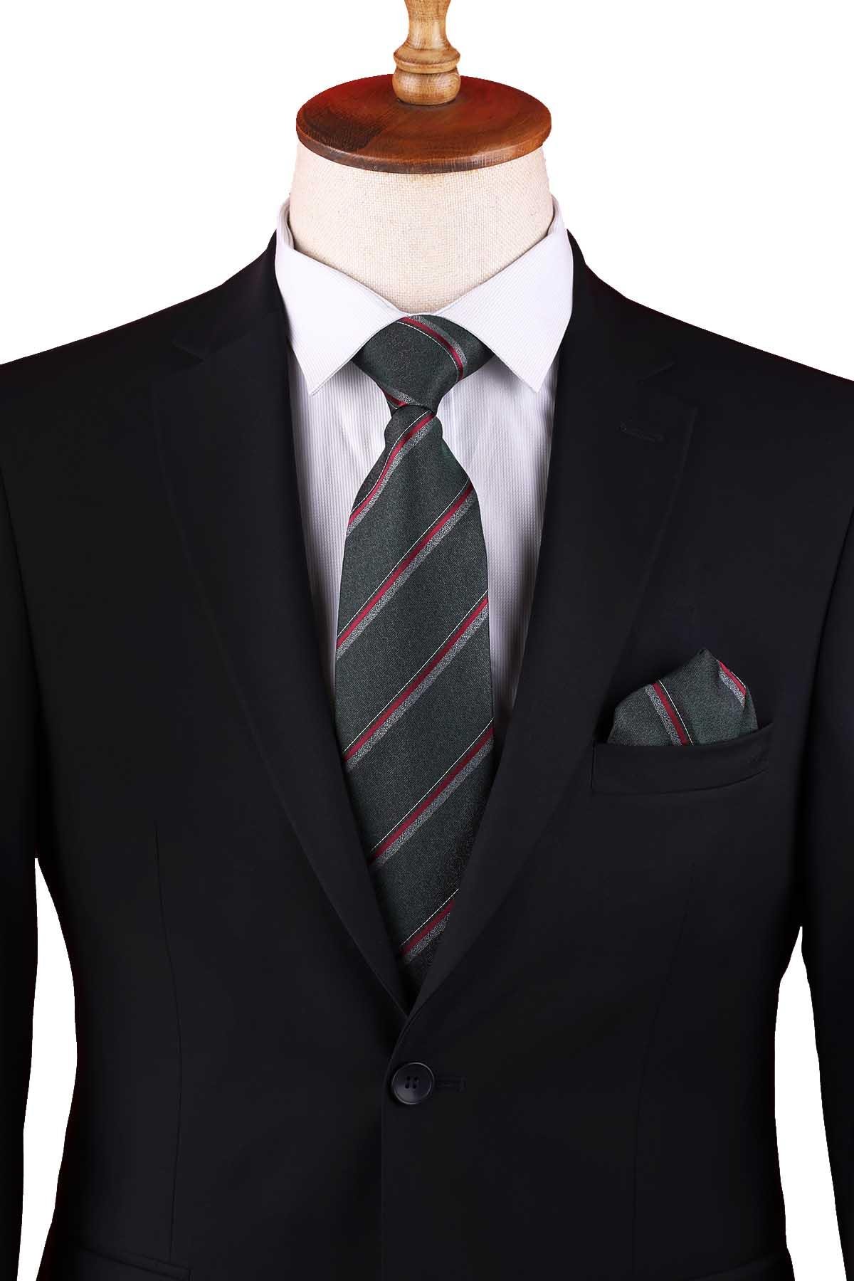 Yeşil Çizgi Desen Mendilli Klasik Kravat KK12916 (KK12916)